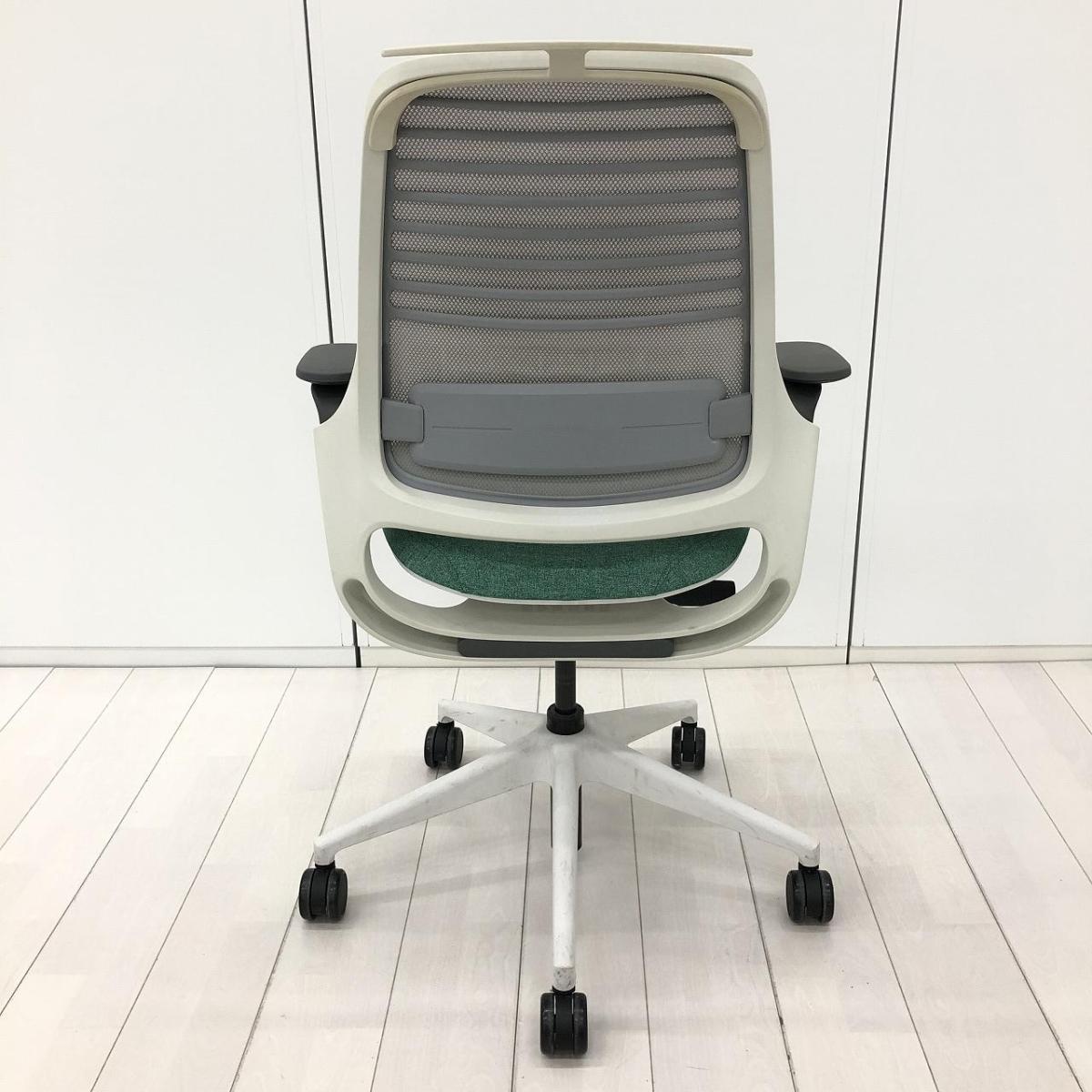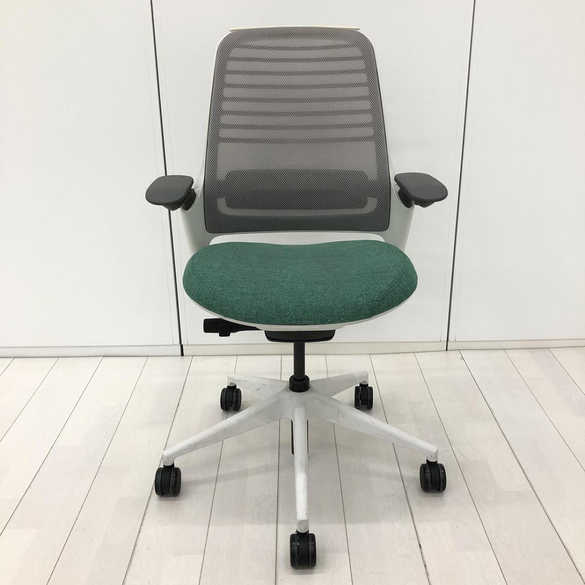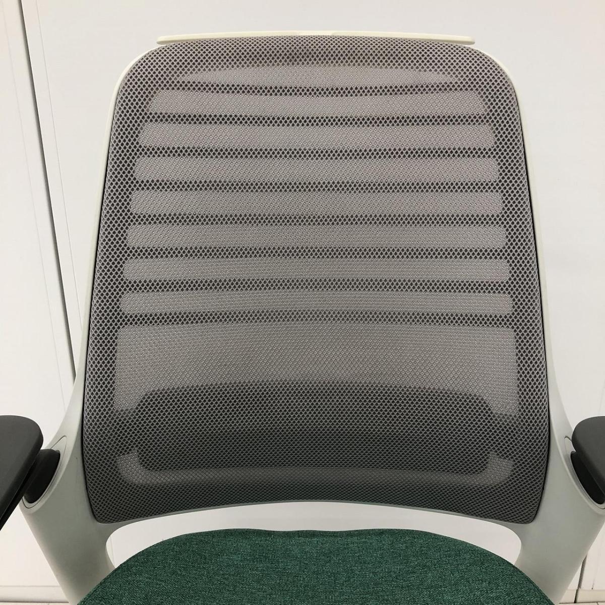 【ワーカーに求められる要素を全て網羅した新生ワークチェア!】■スチールケース(Steelcase)製 シリーズ ワン(series1)チェア 肘付き ハイバック 背面メッシュ ■可動肘・ランバーサポート・ハンガー付き ■背面:ライトグレー・座面:グリーン- 在庫数