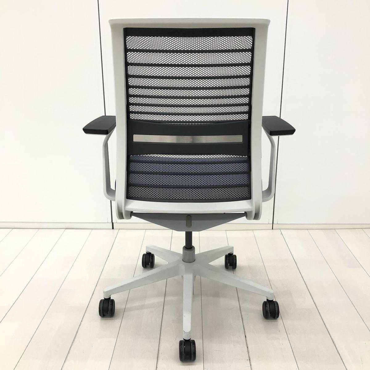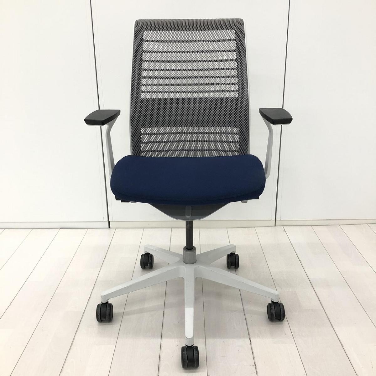 【あなたの座るを考える!ワイヤー構造が体を支える、有名海外メーカー製の定番チェア!】■スチールケース(Steelcase)製 シンク(think)チェア 肘付ハイバック メッシュバックタイプ(3Dニット) ■固定肘・ランバーサポート付き ■背面:ライトグレー・座面:ブルーサーキュラーバリューCO2削減量の算出について