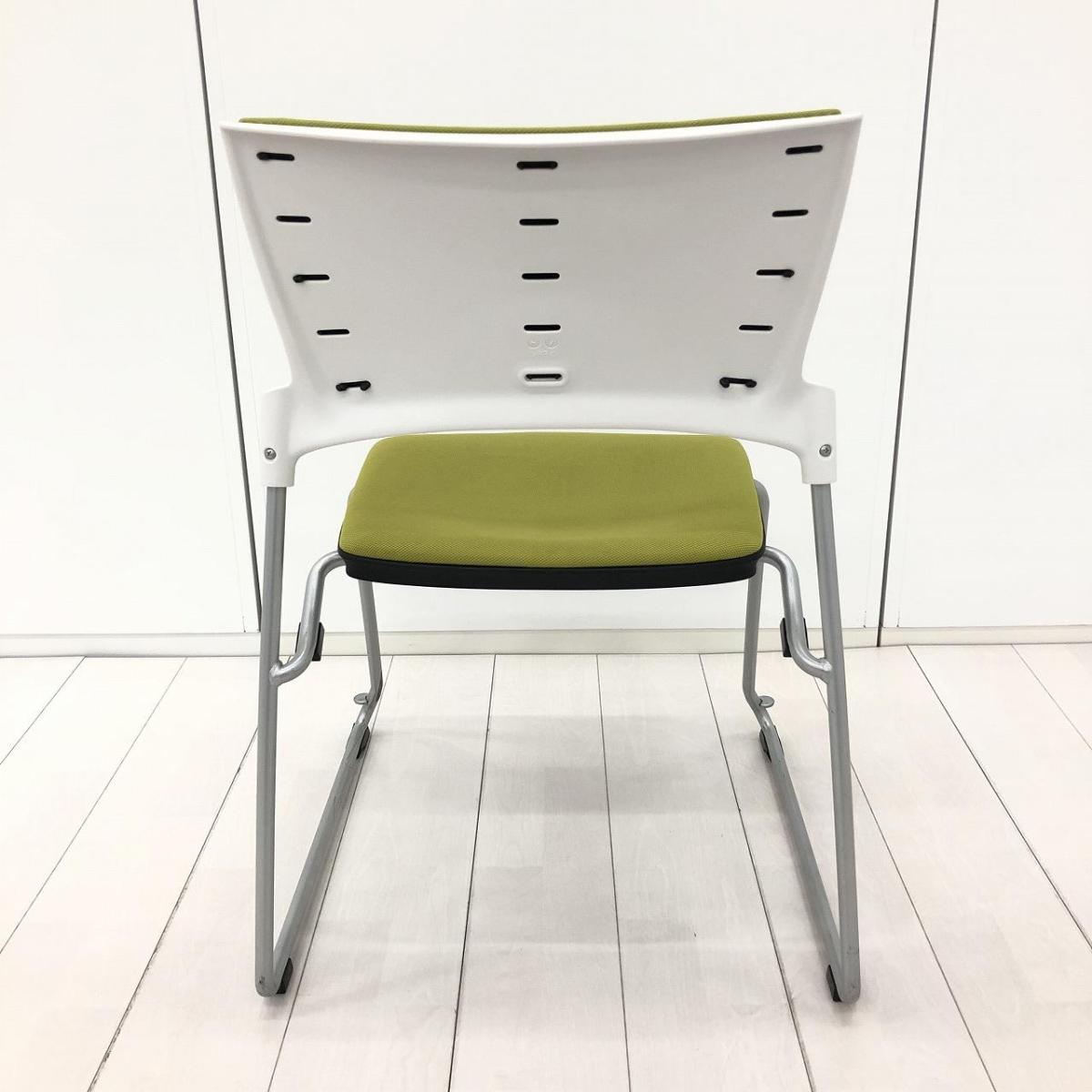 【定価6万円】【ソフトベンディングシェルが背を優しく受け止める!】■イトーキ(ITOKI)製 マノス(MANOSS)チェア スタッキングチェア ミーティングチェア 肘無し ■背パッド付き ■キャスターなし ■モスグリーン×ホワイトシェル- 茨城南店
