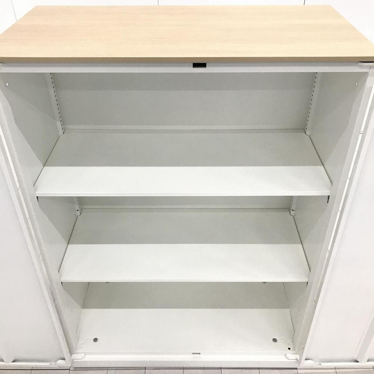 ■オカムラ(okamura)製 ■レクトラインシリーズ ■ローキャビネット ■両開き書庫 ■ホワイト ■シリンダー錠 【弊社使用欄:A01054680】