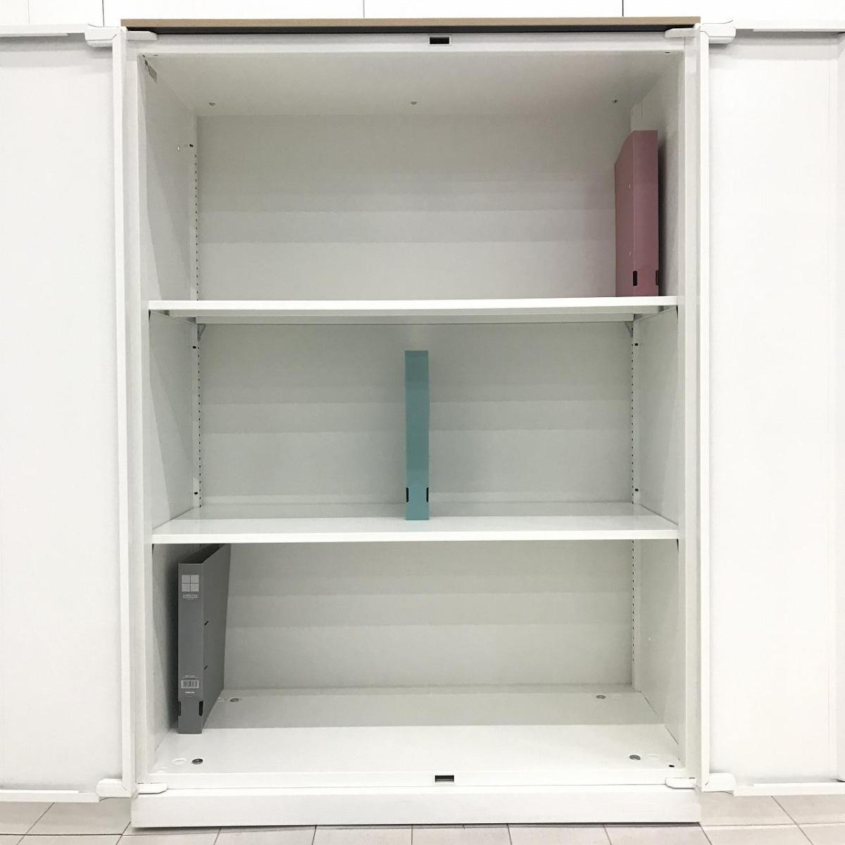 【高品質で使いやすい!】■オカムラ レクトラインシリーズ 両開き書庫 W900×D450×H1120mm ホワイト天板付【Okamura Rectline】