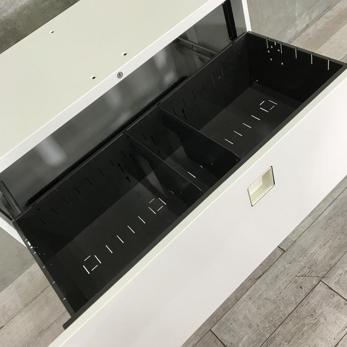 ■オカムラ(okamura)製 ■レクトラインシリーズ ■3段ラテラル ■ローキャビネット ■天板・ベース付 ■シリンダー錠 ■ホワイト ■収納力抜群 ■オススメ/大人気/定番商品【弊社使用欄:A90800122】【SN】