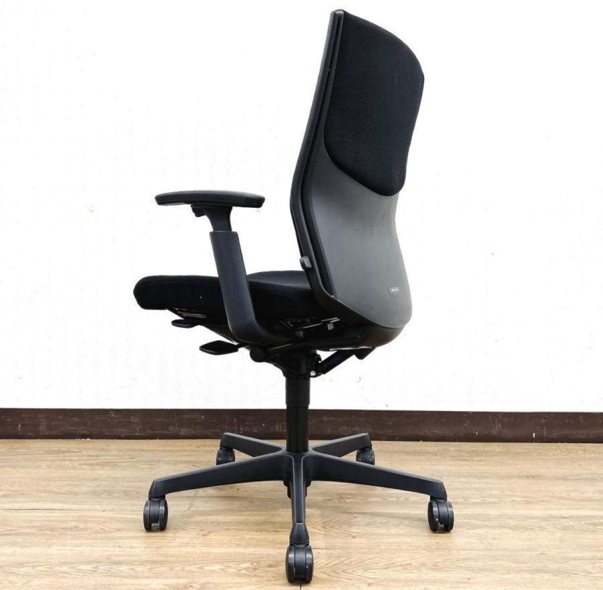 【長時間のデスクワークもランバーが快適にサポート! オカムラ製の人気チェアが入荷!】■okamura(オカムラ)製 エスクードチェア ■ハイバック ■可動肘 ■色:ブラック 【背中全体をサポートするハイバックタイプ】