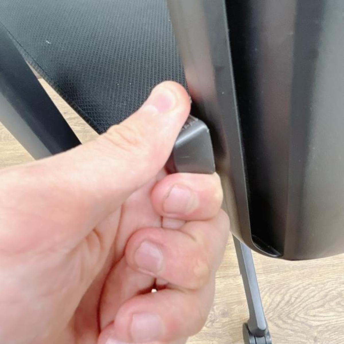 しかも、背もたれ両側のレバーを上下に動かすことによって、ランバーサポートの支点を上下に60mm動かすことができるので、体格に合わせて調整できます。
