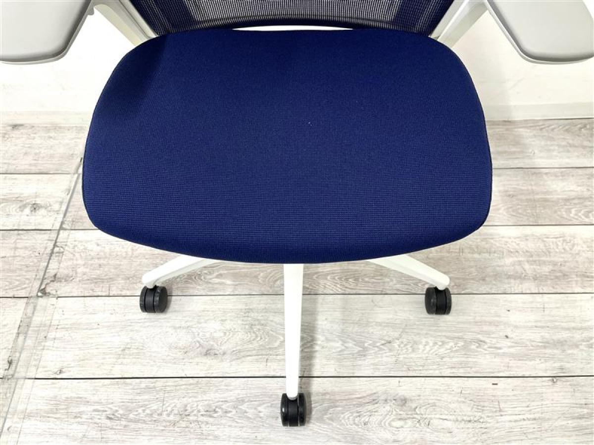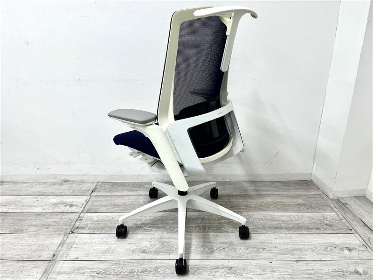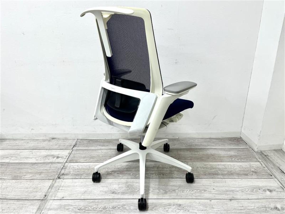 【在庫入替セール】【2021年製で状態良好】オカムラ フィノラ ハイバック 肘付きチェア(アジャストアーム) ダークブルー×ホワイトボディ×ホワイト脚 座クッションの確かな座り心地 コートハンガー&ランバーサポート搭載