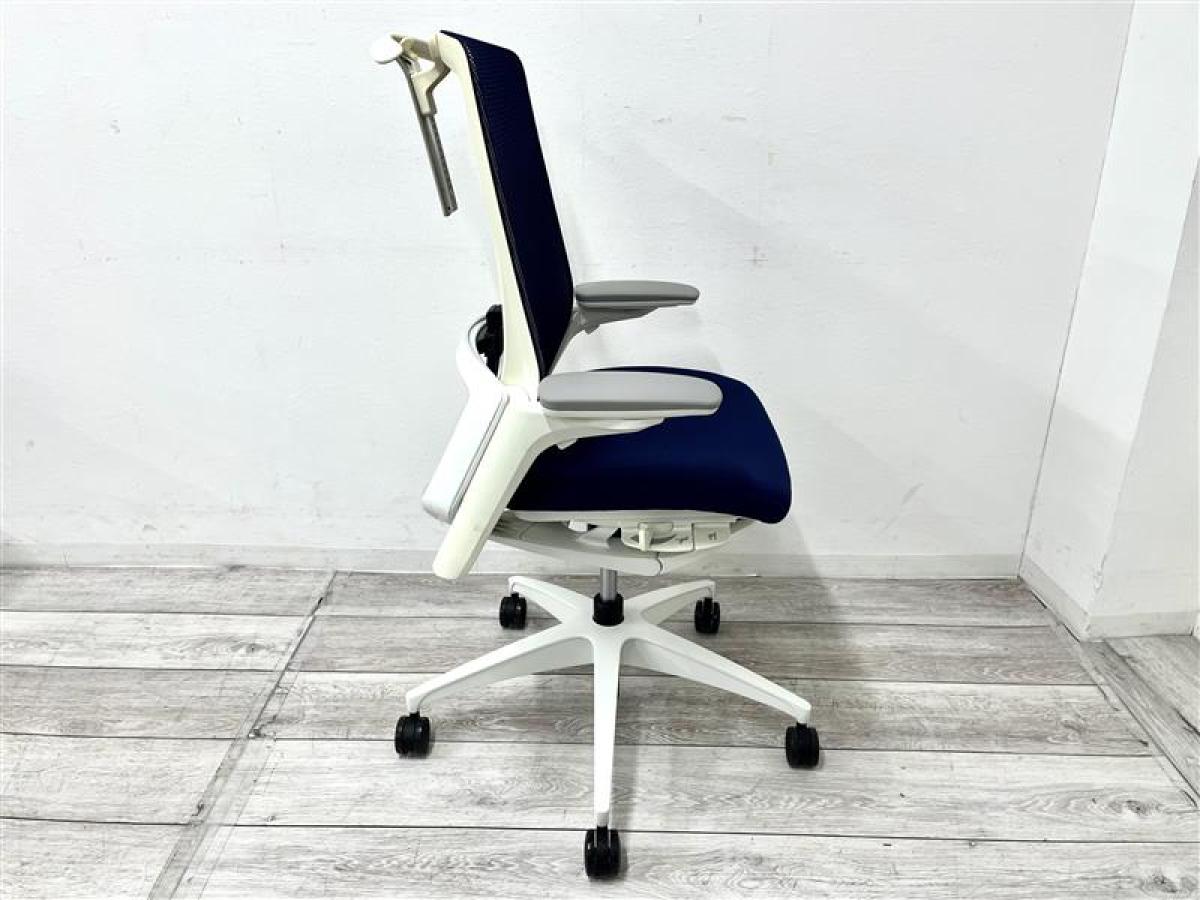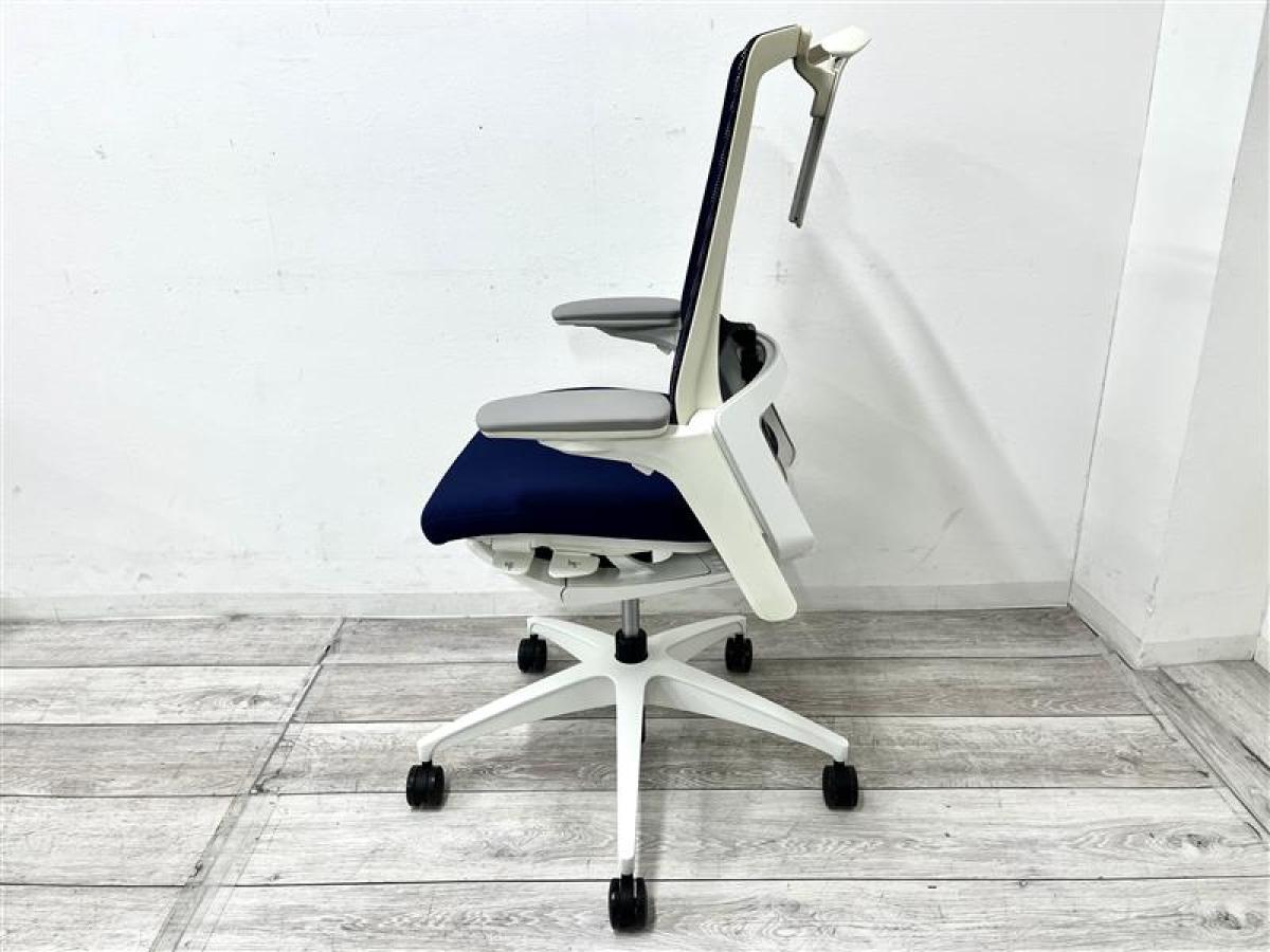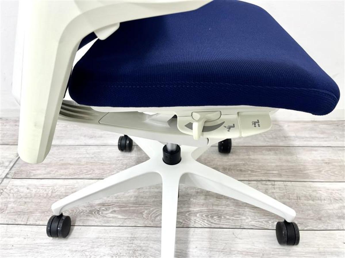 【在庫入替セール】【2021年製で状態良好】オカムラ フィノラ ハイバック 肘付きチェア(アジャストアーム) ダークブルー×ホワイトボディ×ホワイト脚 座クッションの確かな座り心地 コートハンガー&ランバーサポート搭載