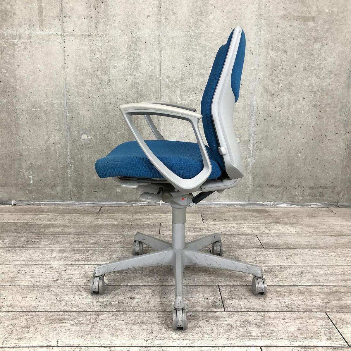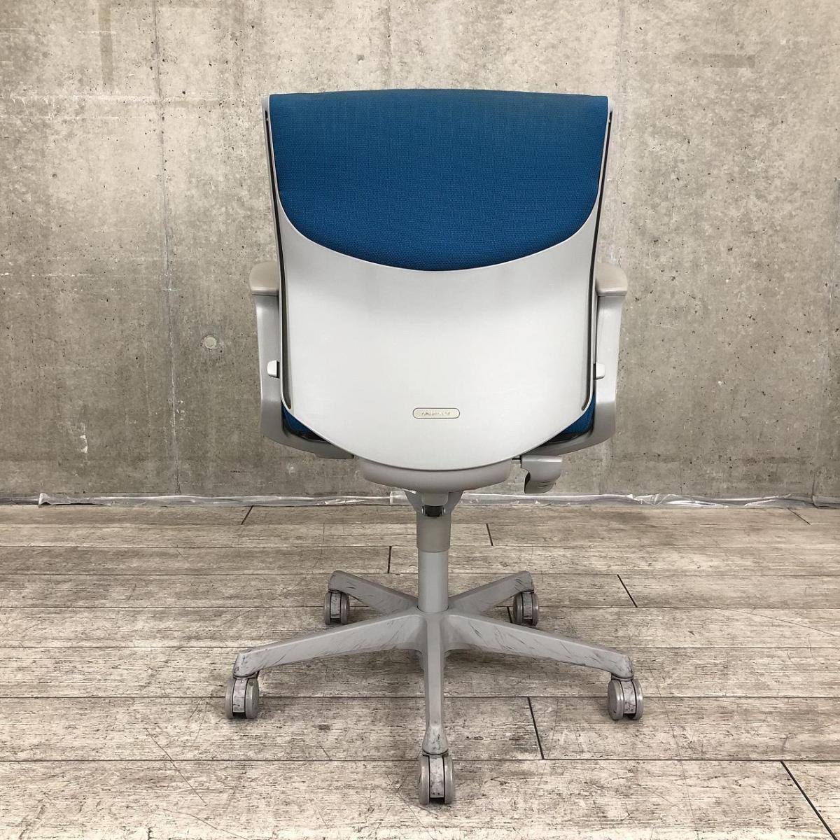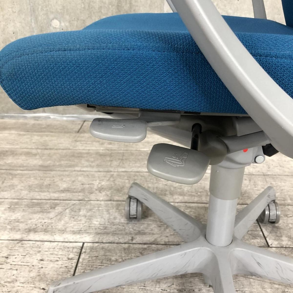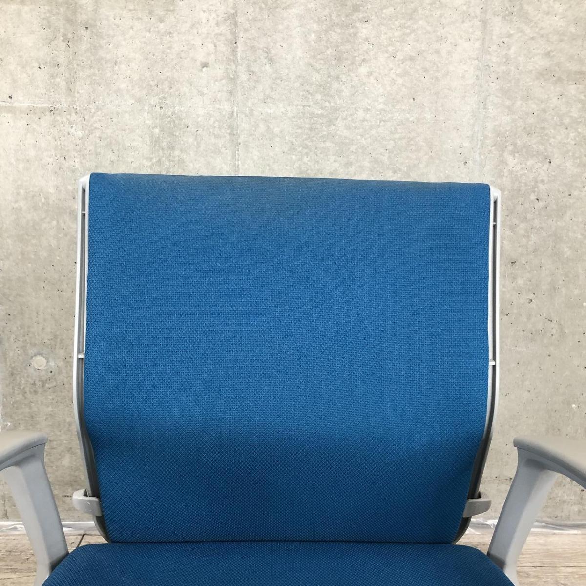 【在庫入替セール】オカムラ エスクード ローバックモデル クッションタイプ デザインアーム付き ブルー×グレーフレーム ランバーサポート搭載で安定感のある機能面と座り心地- 名古屋千種店