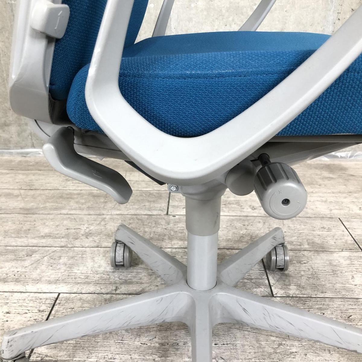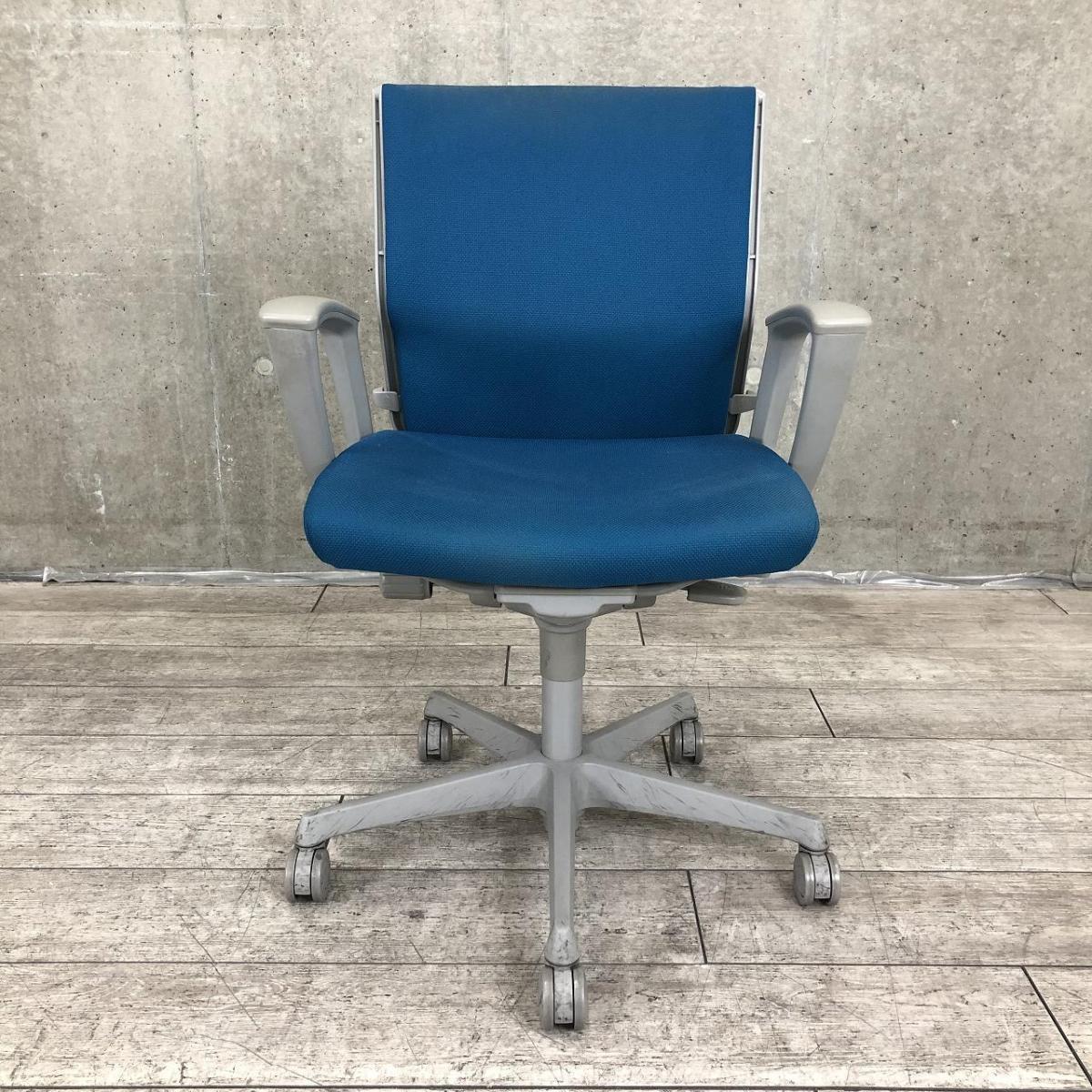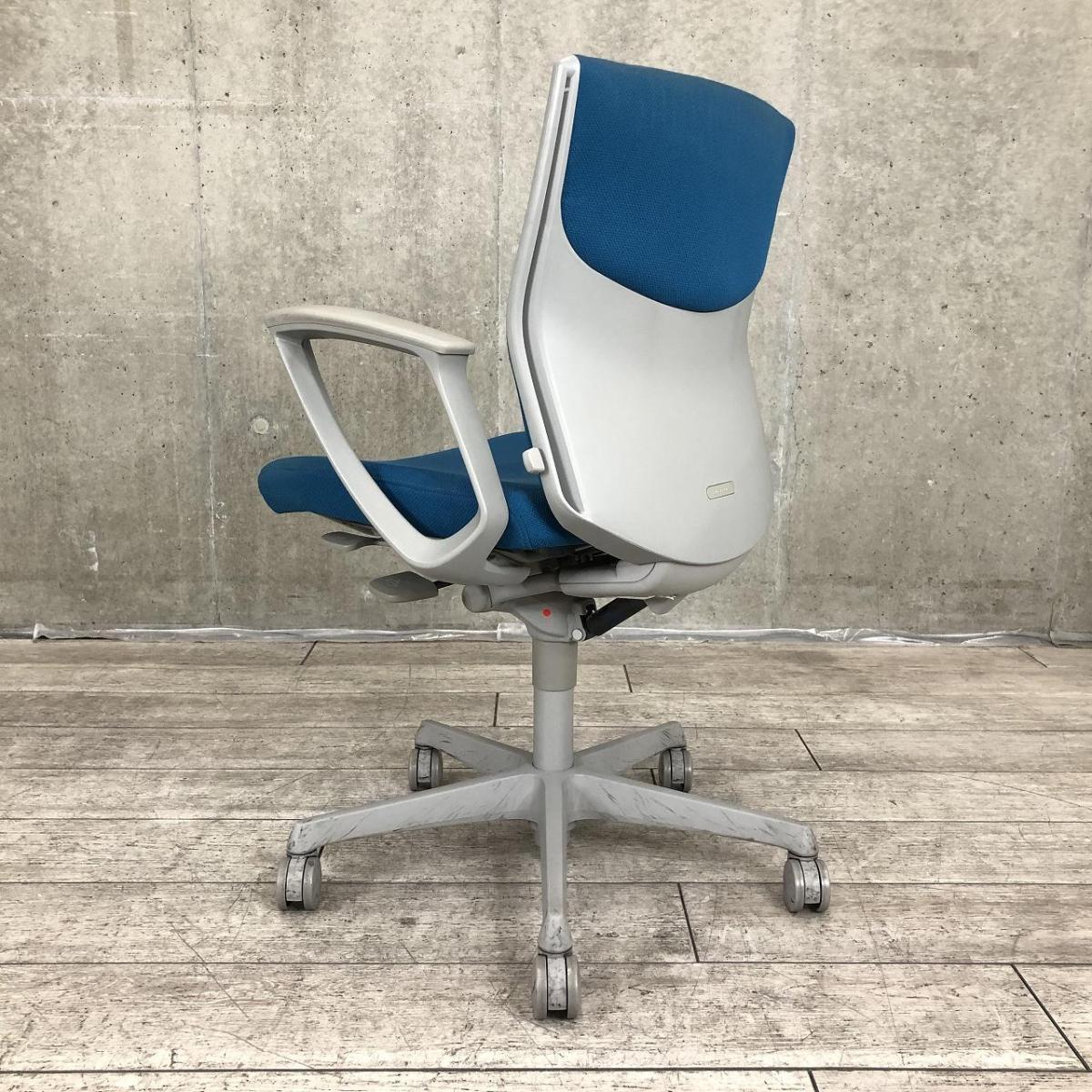 【在庫入替セール】オカムラ エスクード ローバックモデル クッションタイプ デザインアーム付き ブルー×グレーフレーム ランバーサポート搭載で安定感のある機能面と座り心地- 名古屋千種店