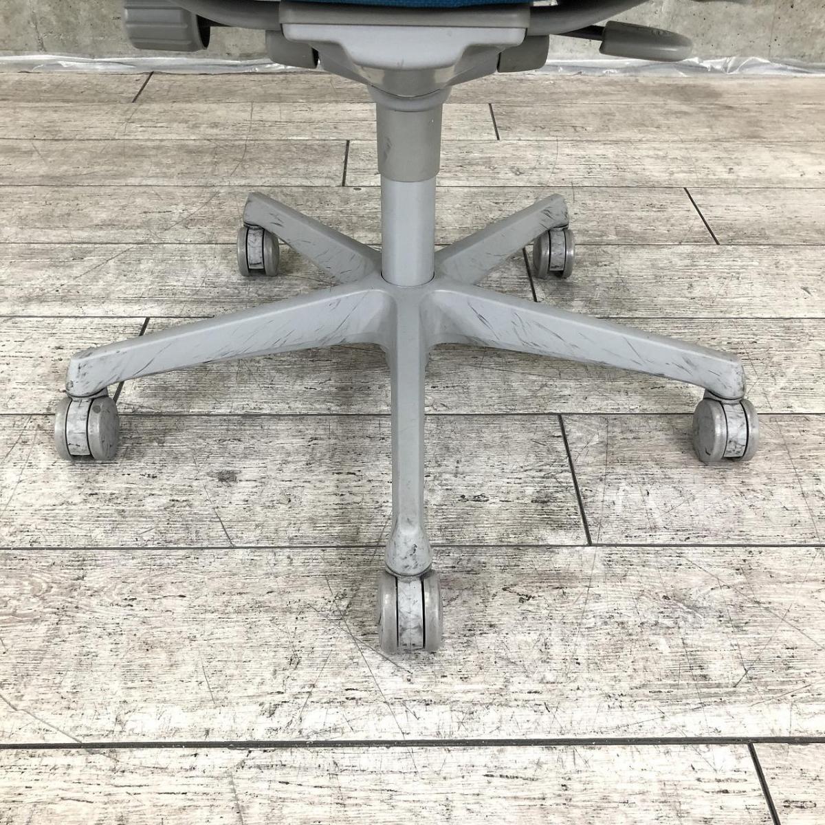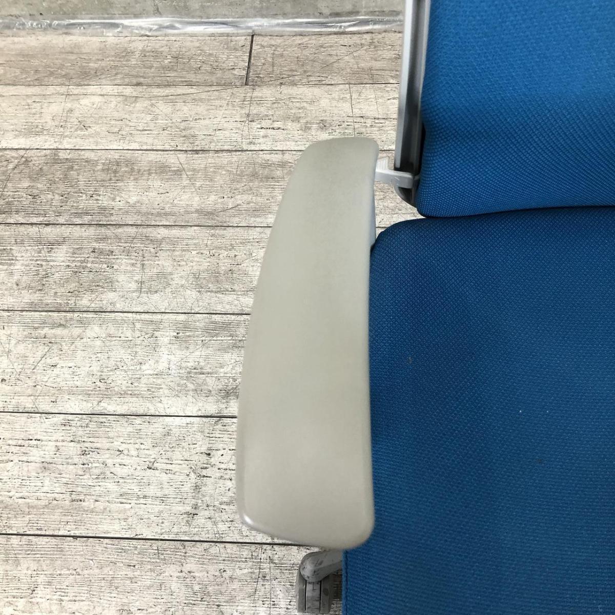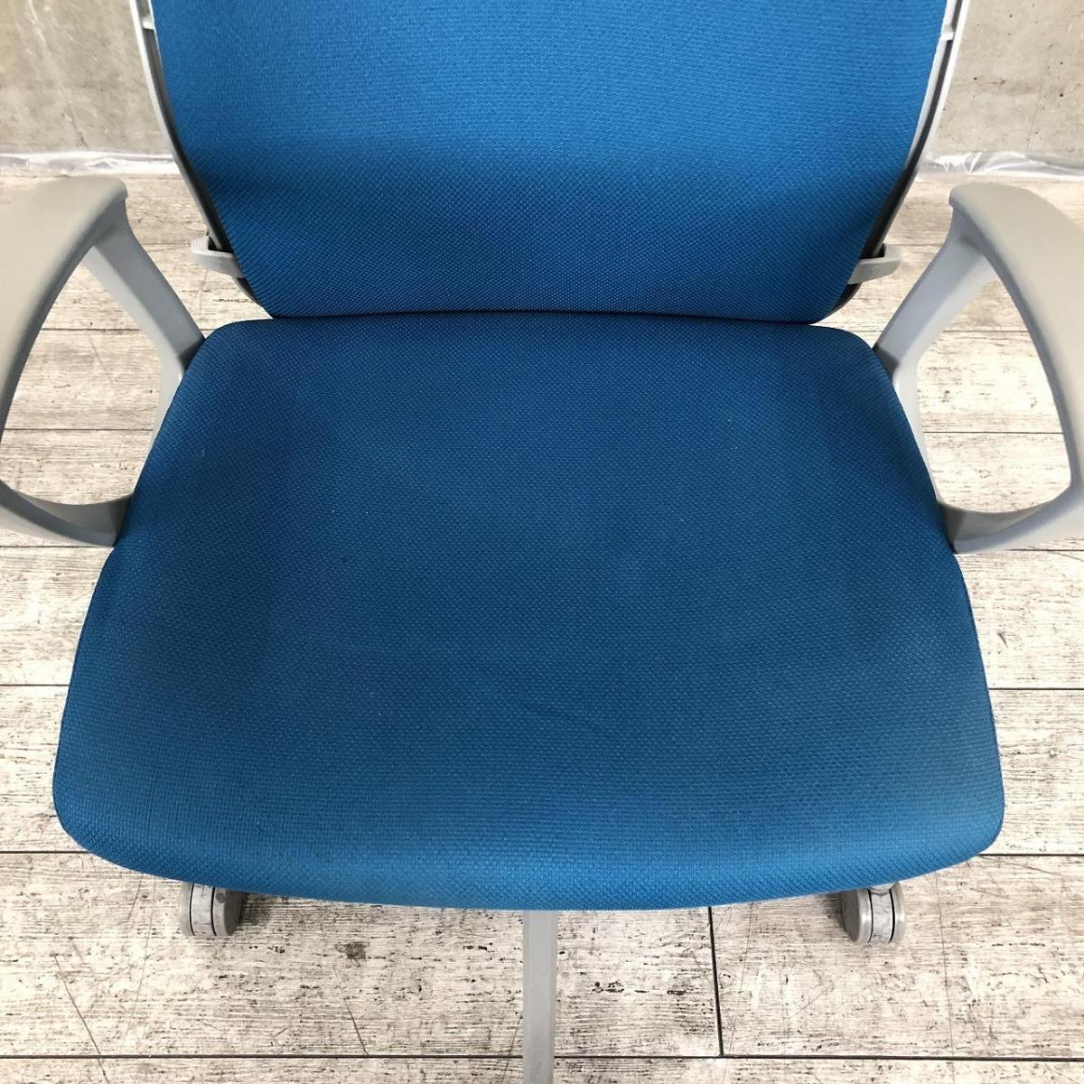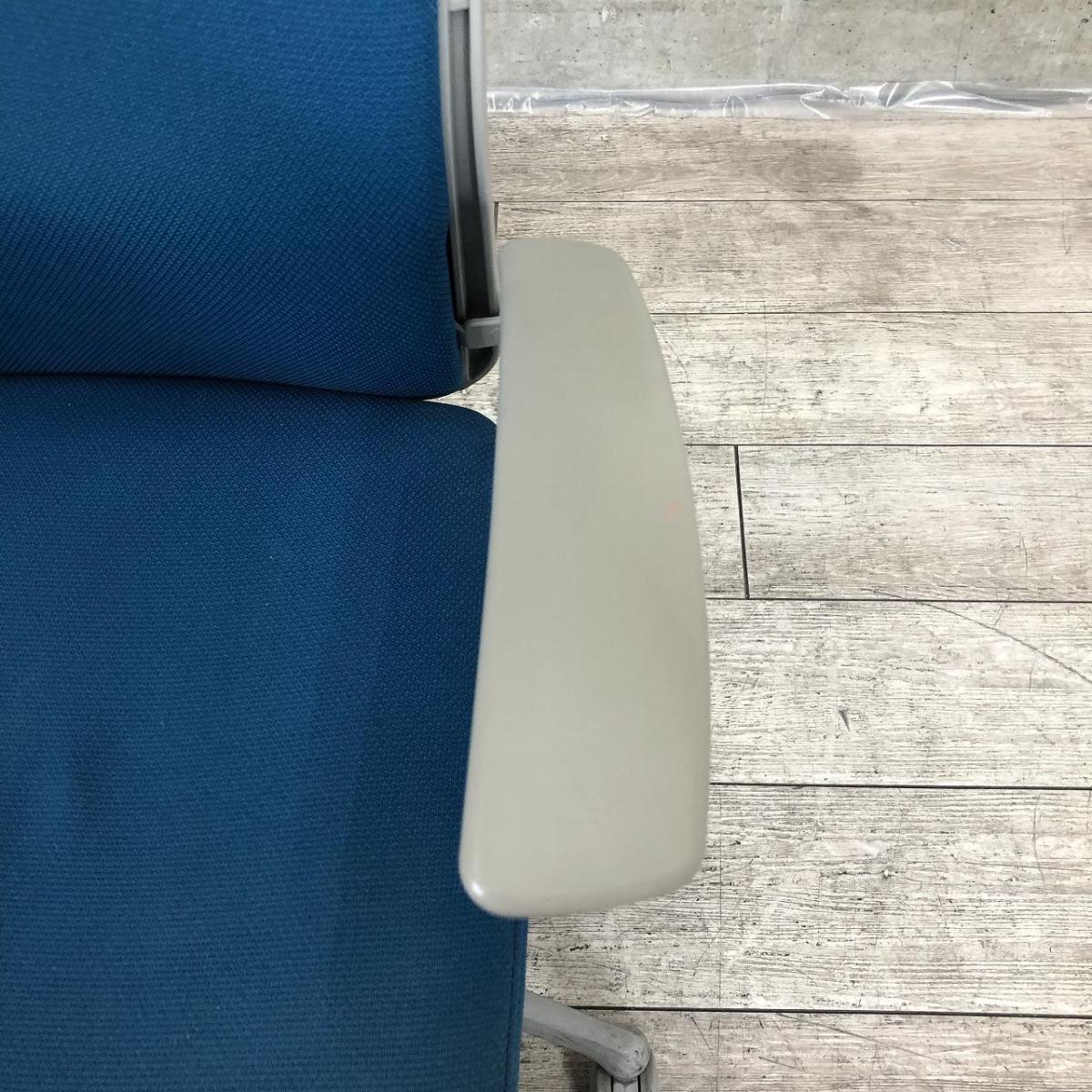 【在庫入替セール】オカムラ エスクード ローバックモデル クッションタイプ デザインアーム付き ブルー×グレーフレーム ランバーサポート搭載で安定感のある機能面と座り心地- 名古屋千種店