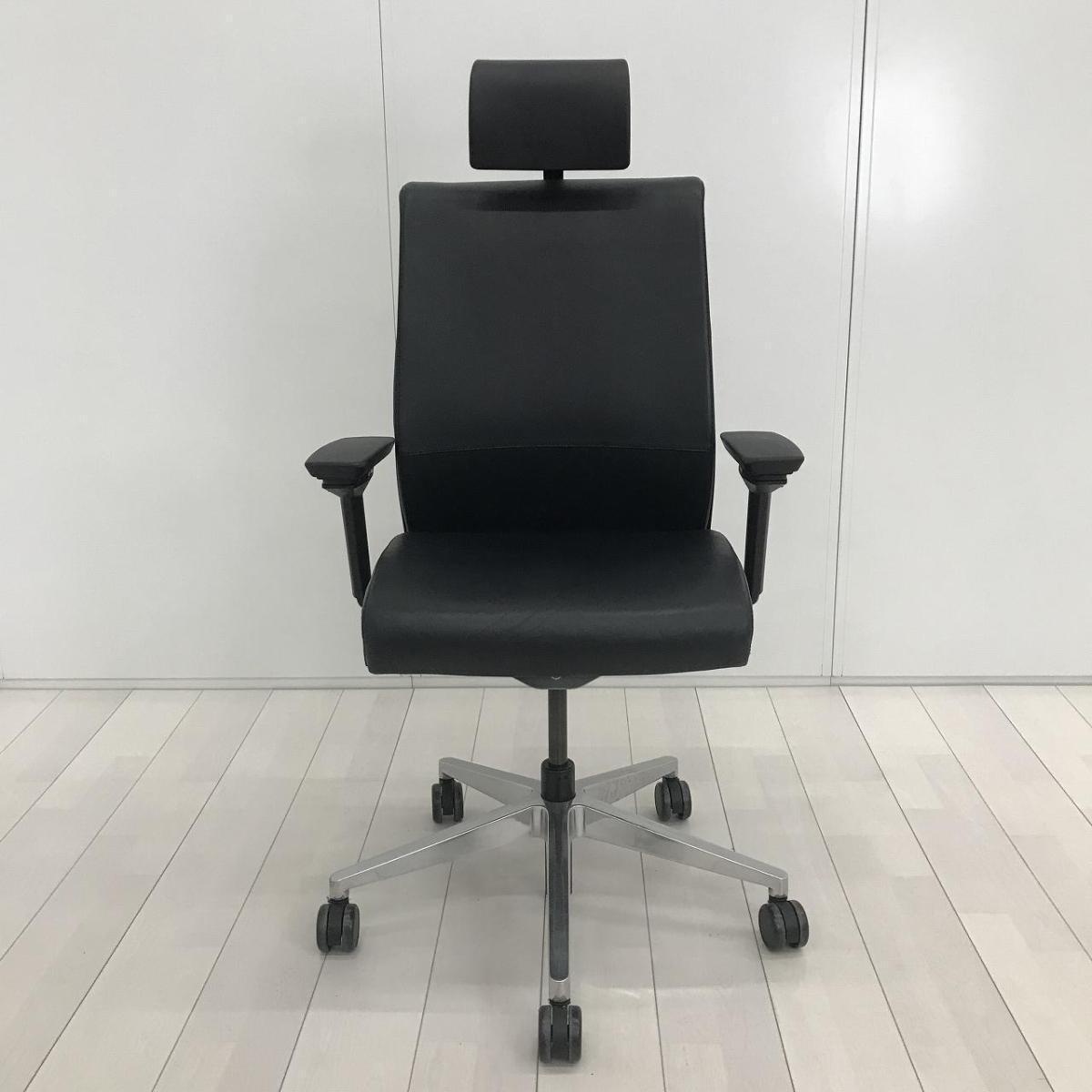 【あなたの座るを考える!ワイヤー構造が体を支える、有名海外メーカー製の定番チェアがレザー張地で入荷!】■スチールケース(Steelcase)製 シンク(think)チェア 肘付ハイバック ■レザー張地 ■可動肘・ヘッドレスト付き ■色:ブラック- 名古屋本店
