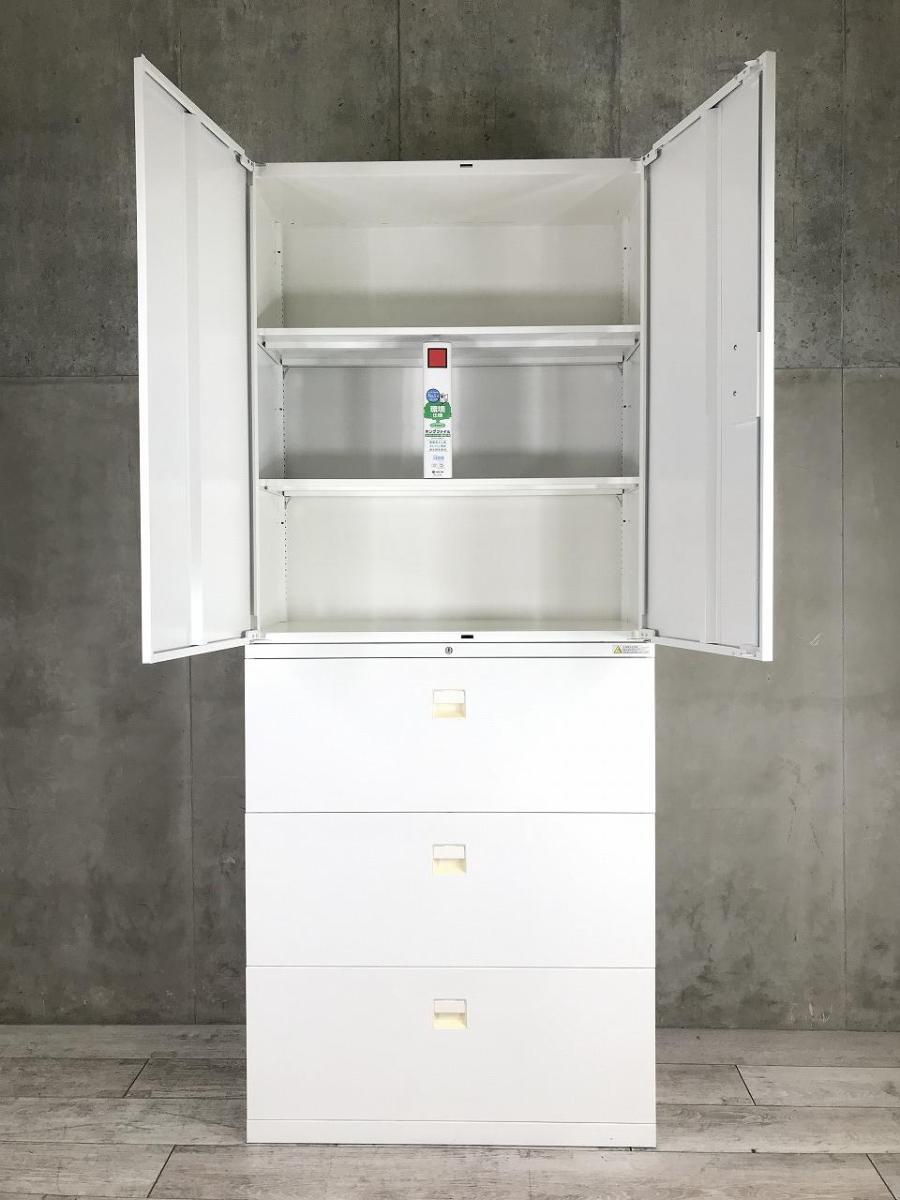 【定価約20万円】【オフィスの人気シリーズ!観音開き+引き出し仕様!書類整理におすすめ!】■オカムラ(okamura)製 SAデュオラインシリーズ 3S書庫セット 両開き+3段ラテラル H2150㎜ ■シリンダー錠 ■ホワイト