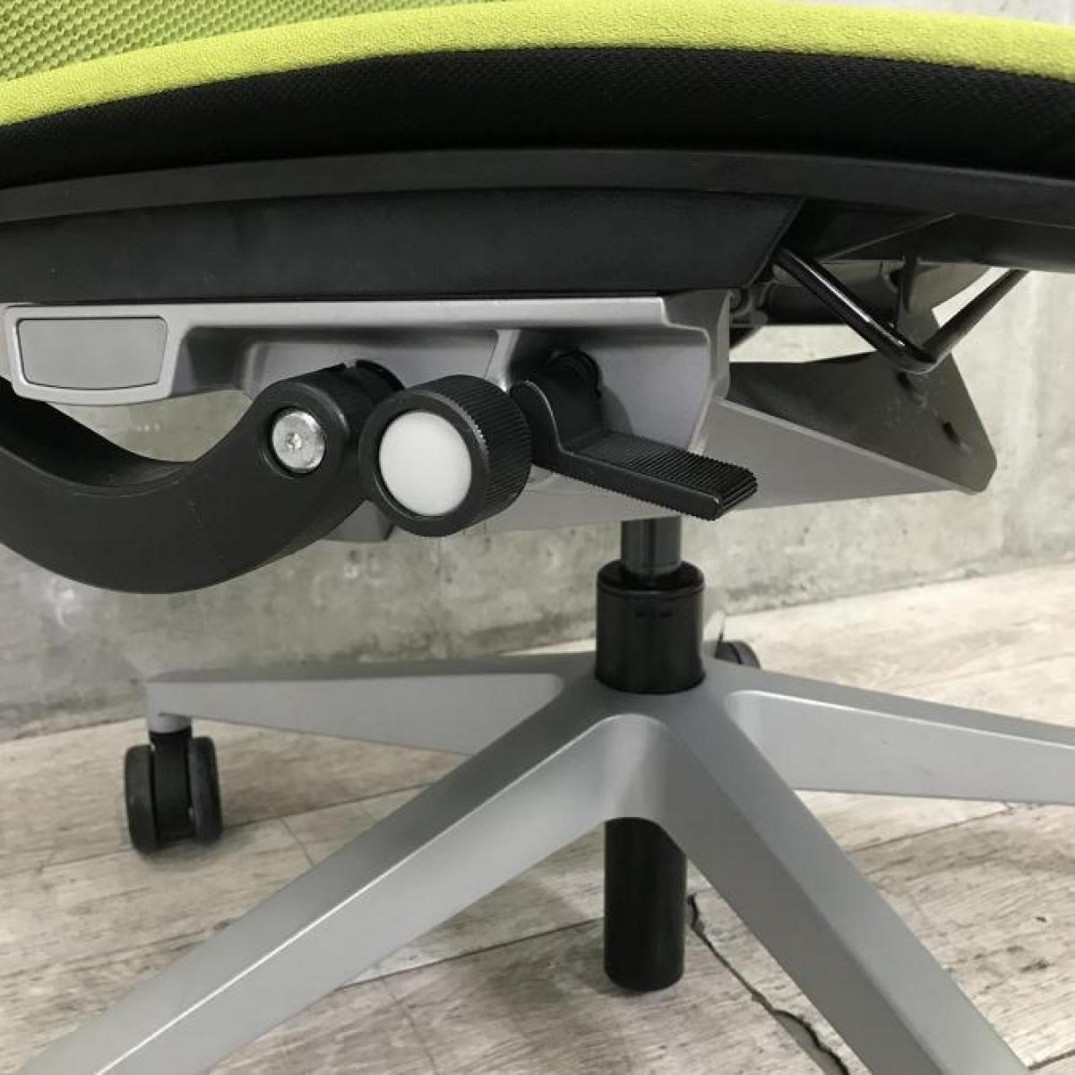 快適な座り心地に不可欠な調節機能である、上下昇降、座面の奥行き調整、リクライニングなどを備えており、操作もわかりやすく好評です。 特に、座面の奥行きは、座面下の左右に通った細いバーで調整でき、座ったままで軽やかに滑るように調整が可能です。 価格面では、新品では高めですが、中古は流通も多く、定価の3割前後の価格で高級チェアの座り心地を手に入れることができます!