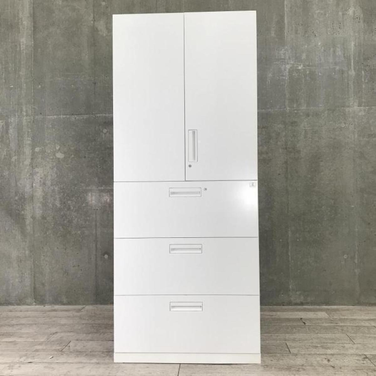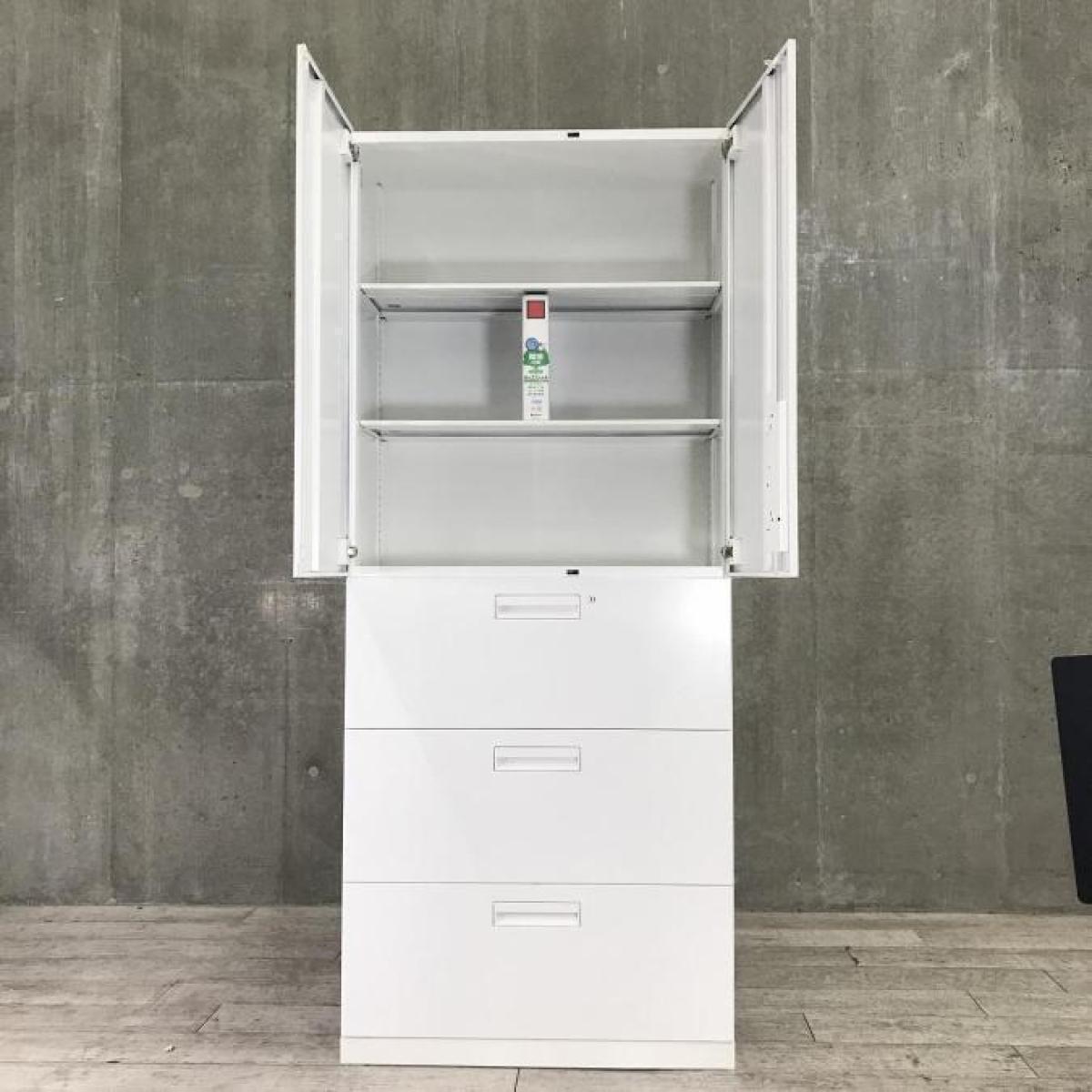 【収納量抜群の書庫セット!観音開き+引き出しタイプの人気の組み合わせ!】■コクヨ(KOKUYO)製 エディア(EDIA)シリーズ 両開き+3段ラテラル 書庫セット ハイキャビネット ■シリンダー錠 ■ホワイト オフィスバスターズ 水戸サテライト 水戸市、日立市、ひたちなか市、鹿嶋市、神栖市、牛久市、古河市、結城市、東海村、つくば市
