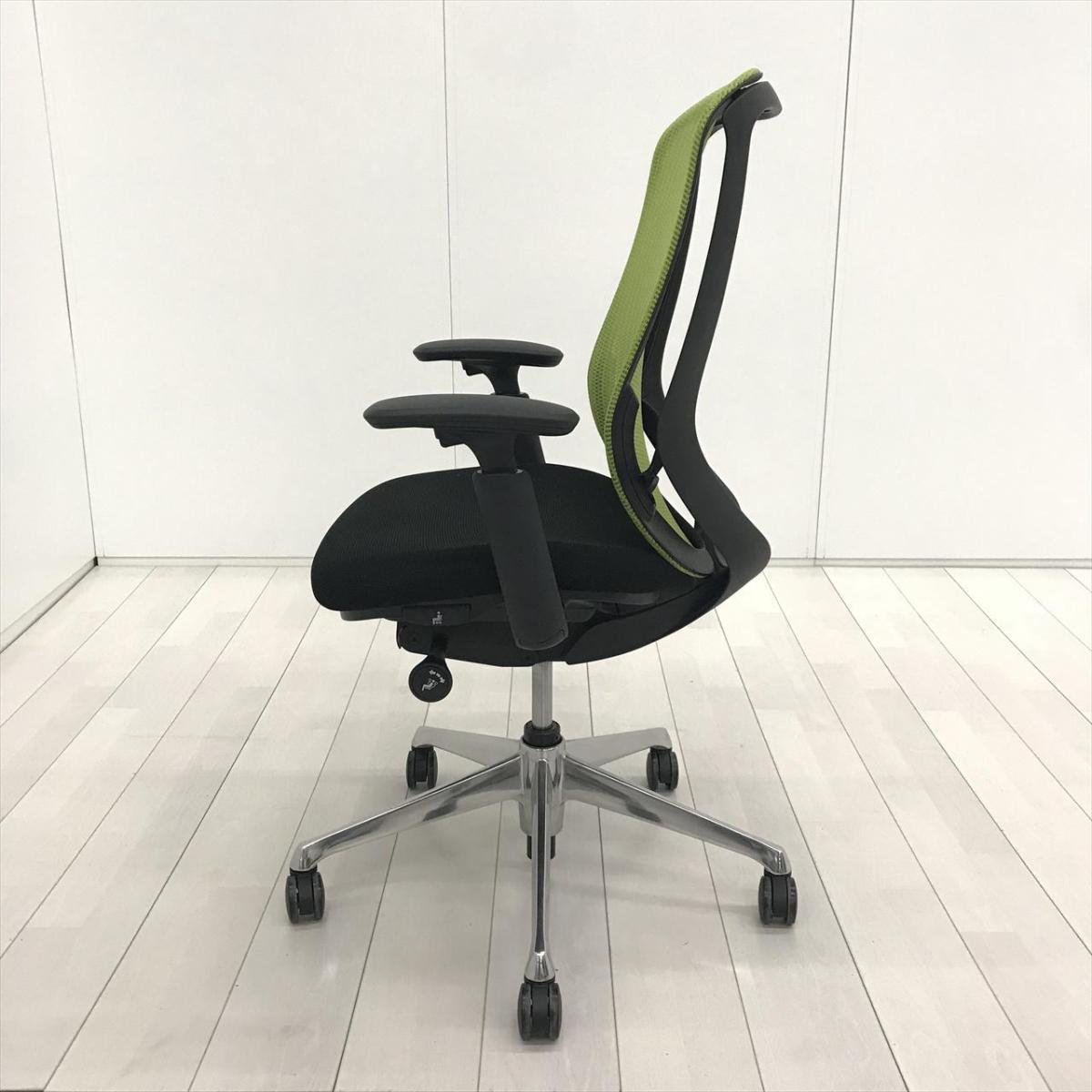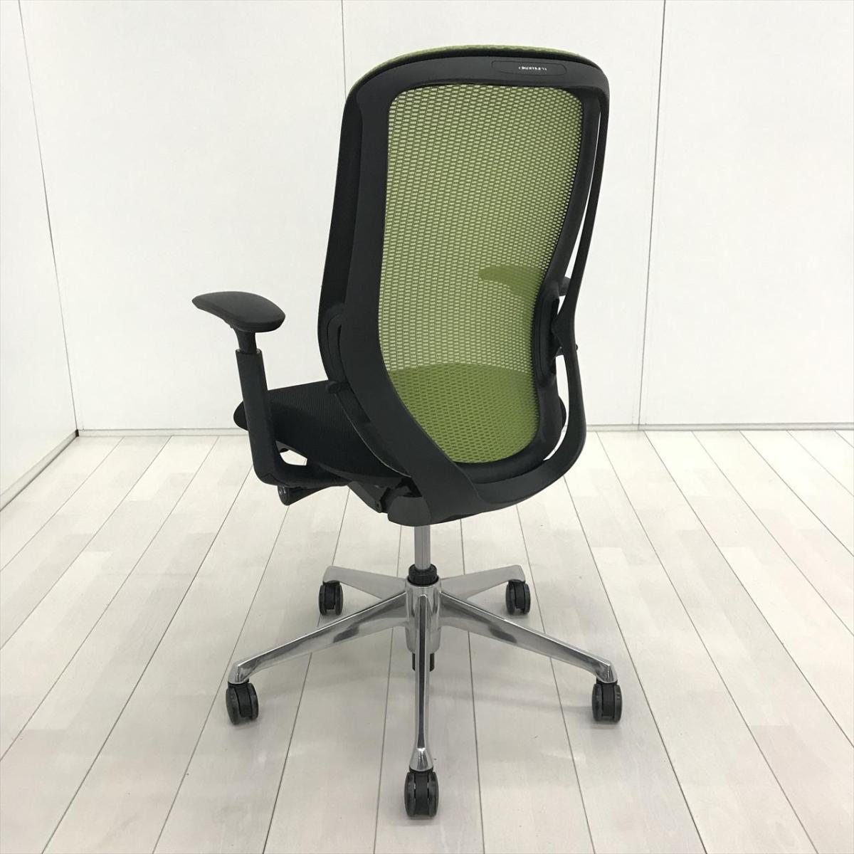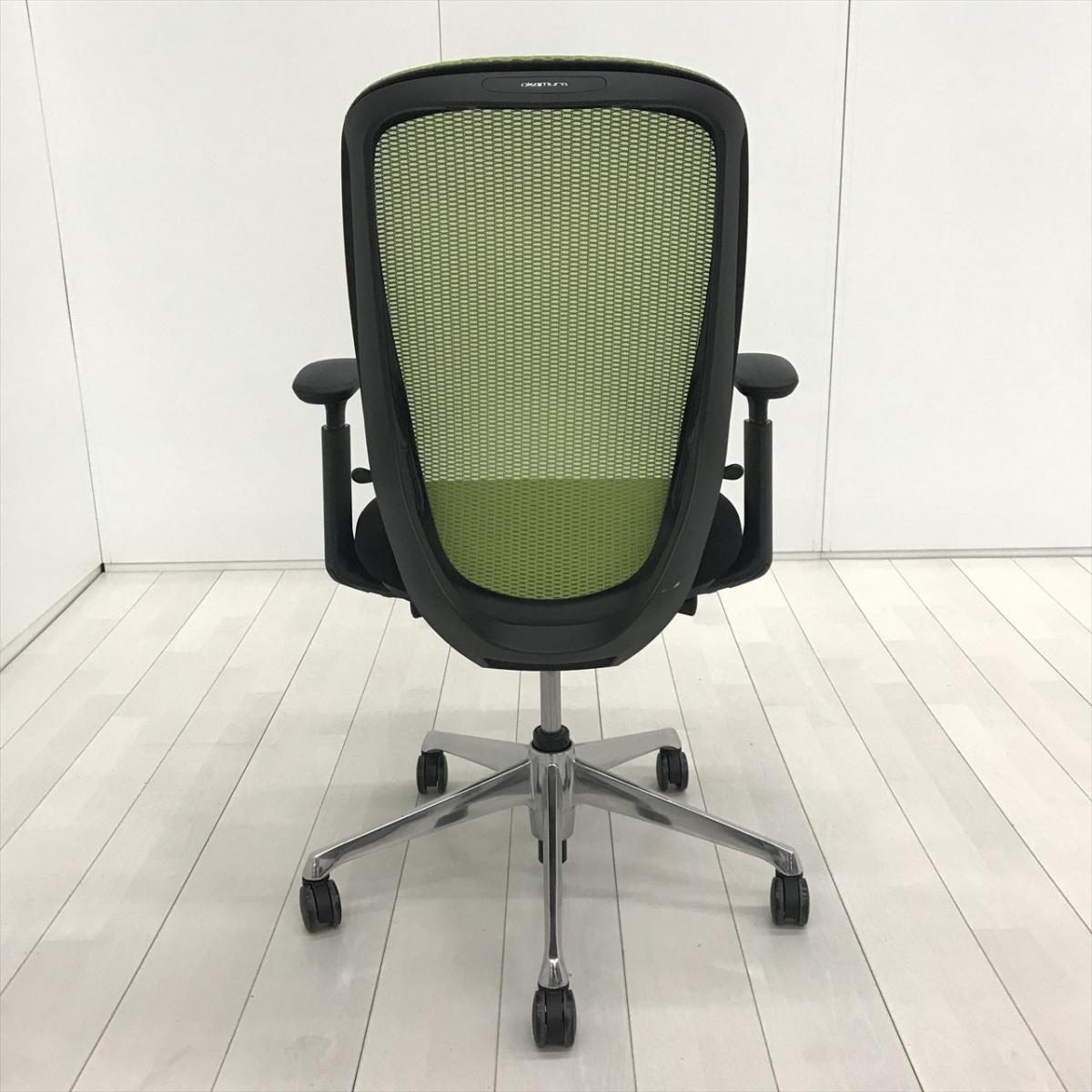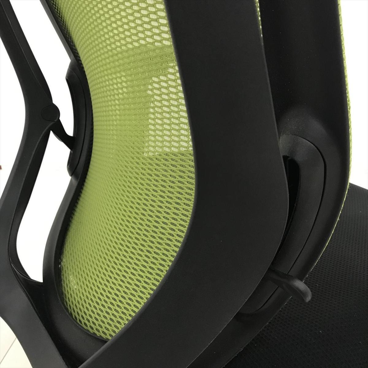 【超希少なワークヴェール付き!】オカムラ製品で最も人気を集める高機能メッシュチェア!集中力up! ■オカムラ/シルフィー(Sylphy)/ライムグリーン 肘付き ハイバック 背面メッシュ ■可動肘 ヘッドレスト付