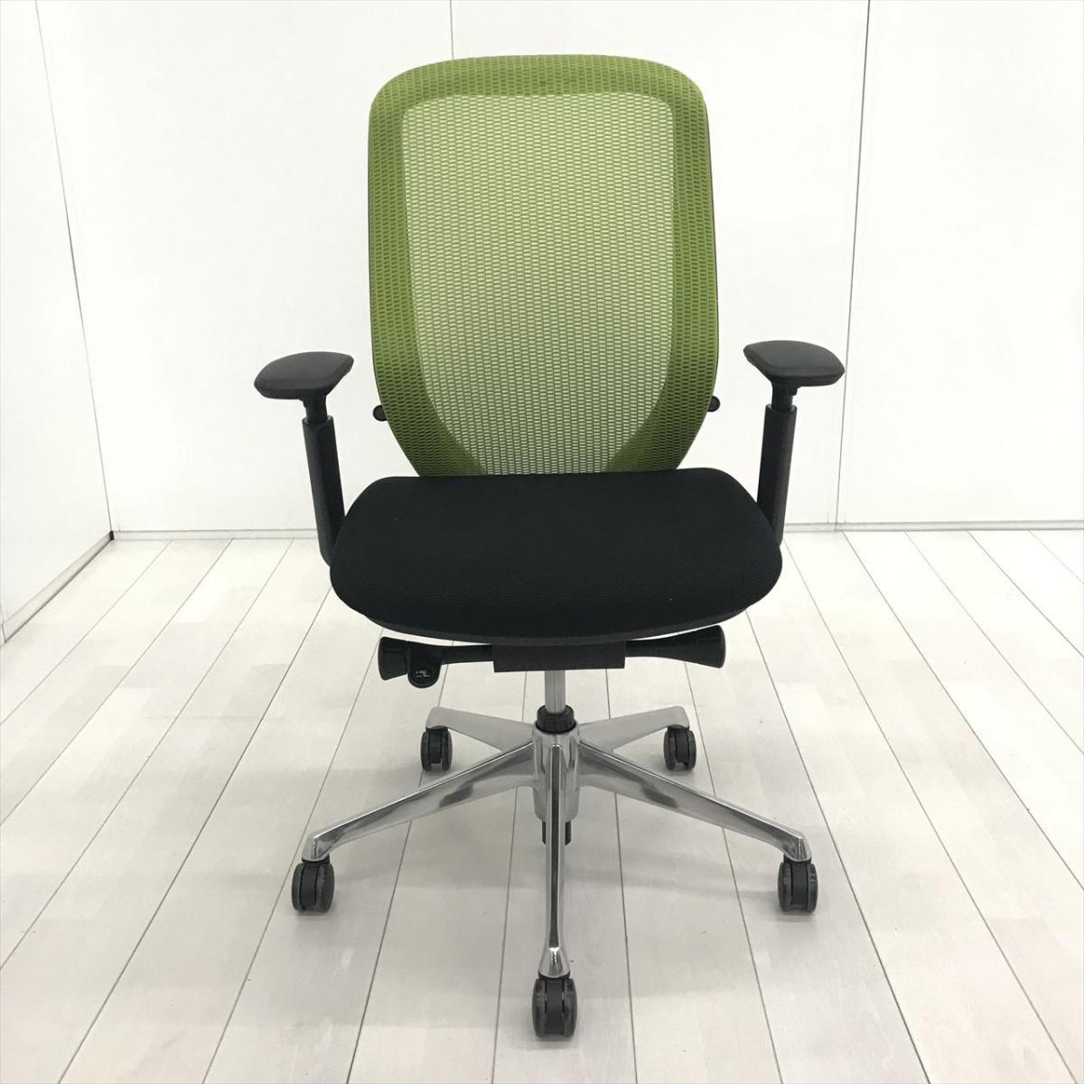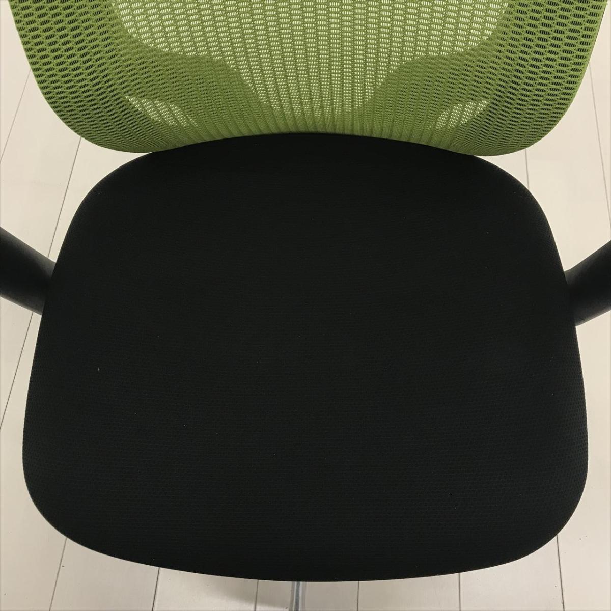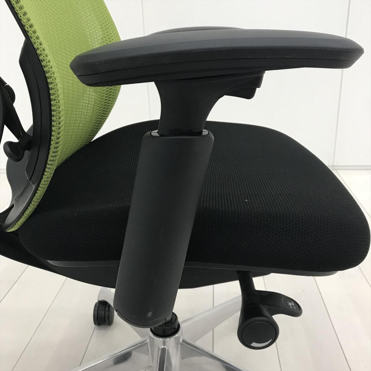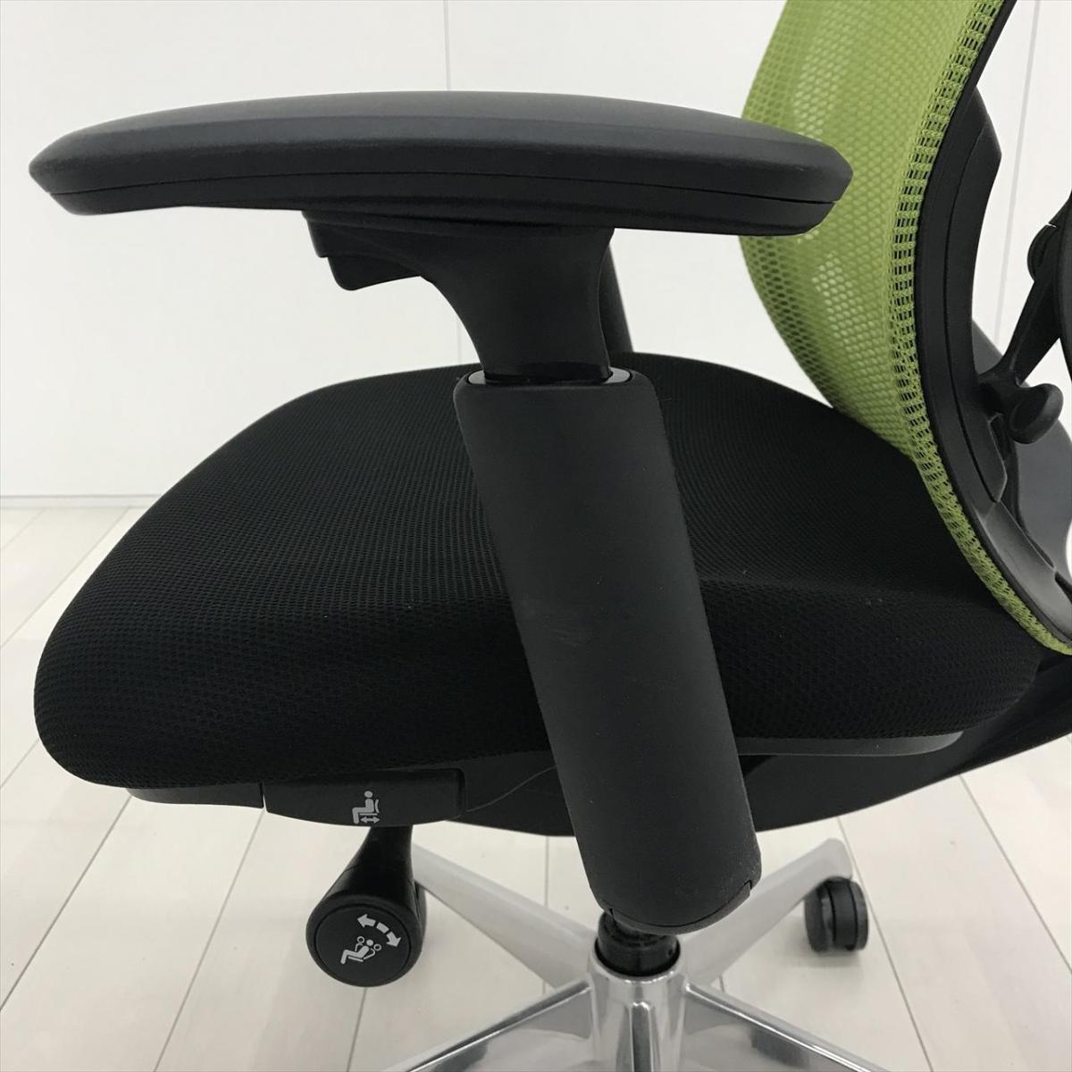 【超希少なワークヴェール付き!】オカムラ製品で最も人気を集める高機能メッシュチェア!集中力up! ■オカムラ/シルフィー(Sylphy)/ライムグリーン 肘付き ハイバック 背面メッシュ ■可動肘 ヘッドレスト付