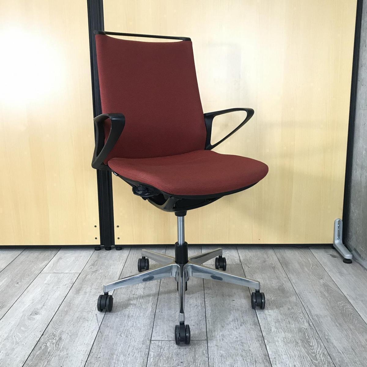【優しく包み込むような快適な座り心地!】■オカムラ モードチェア 肘付 レッド ■モダンな空間を演出!インテリア性の高い人気チェア!【okamura mode】★4- 川崎店