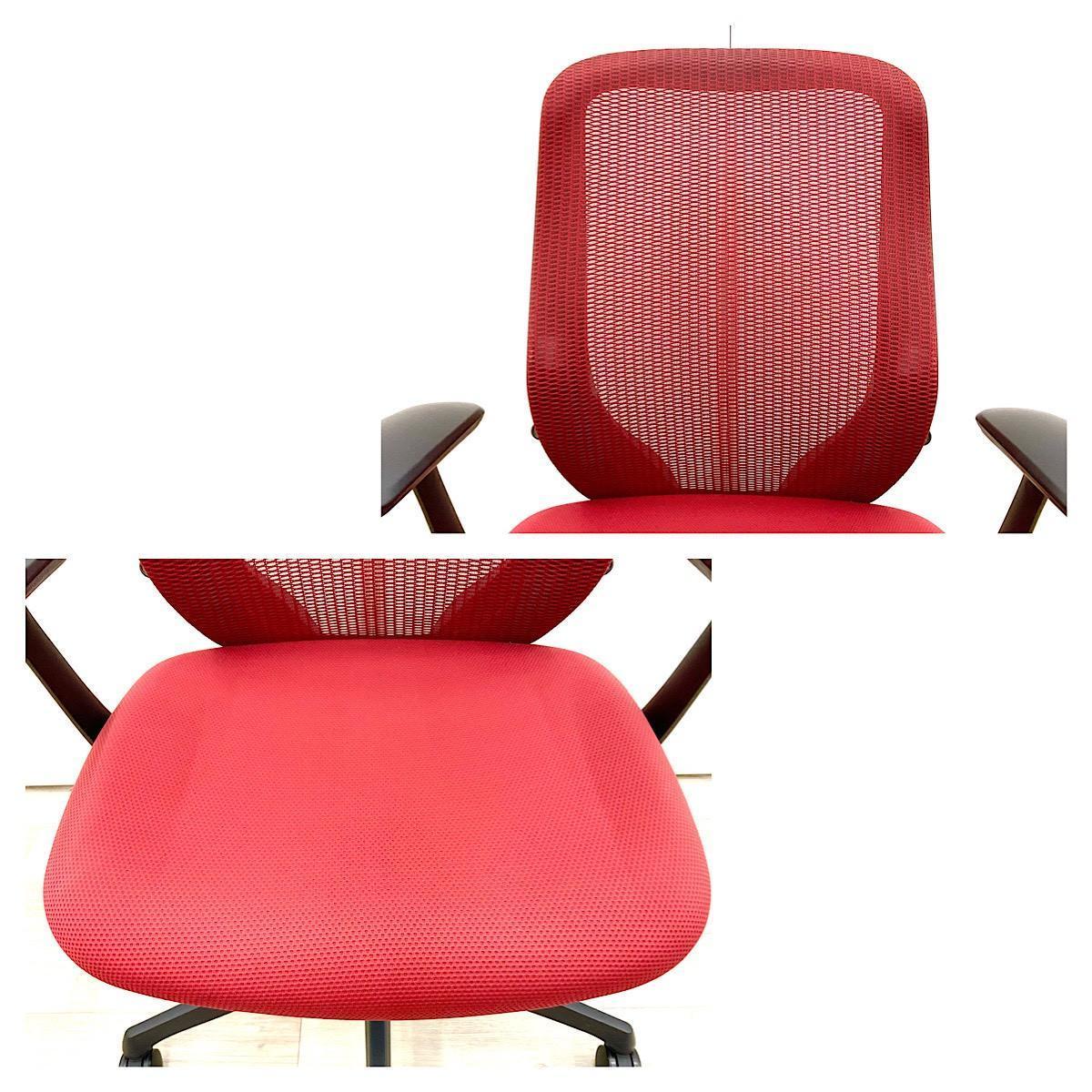 《残り1脚》オカムラ製の人気オフィスチェア【シルフィーメッシュ/可動肘/ヘッドレスト付き/レッドカラー】が入荷いたしました!#前傾チルト機能付き *良品を格安で!「オフィスバスターズ福岡南店」は、福岡を拠点として、全国へ中古オフィス用品・オフィス家具を提供しております。