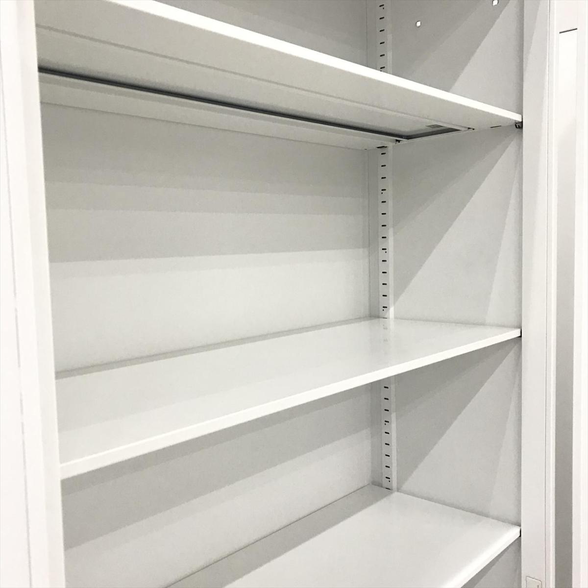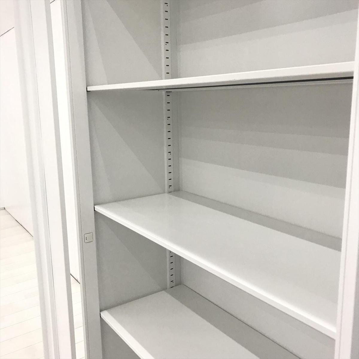 棚板の設置位置も変更可能ですので、書類以外の備品類など、目的別に収納可能です。