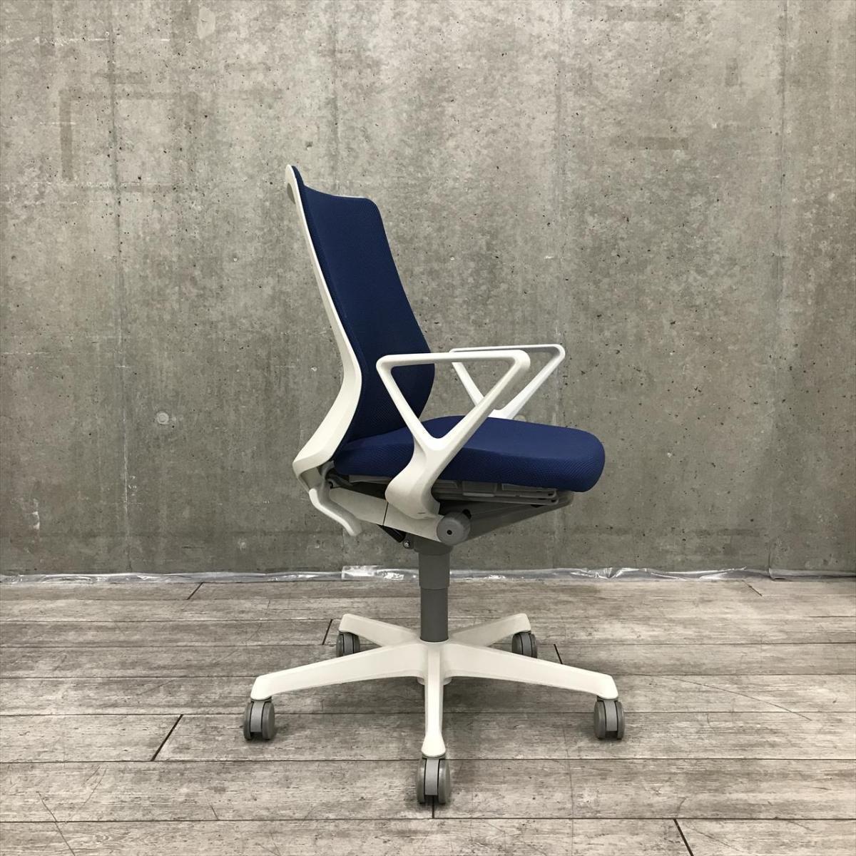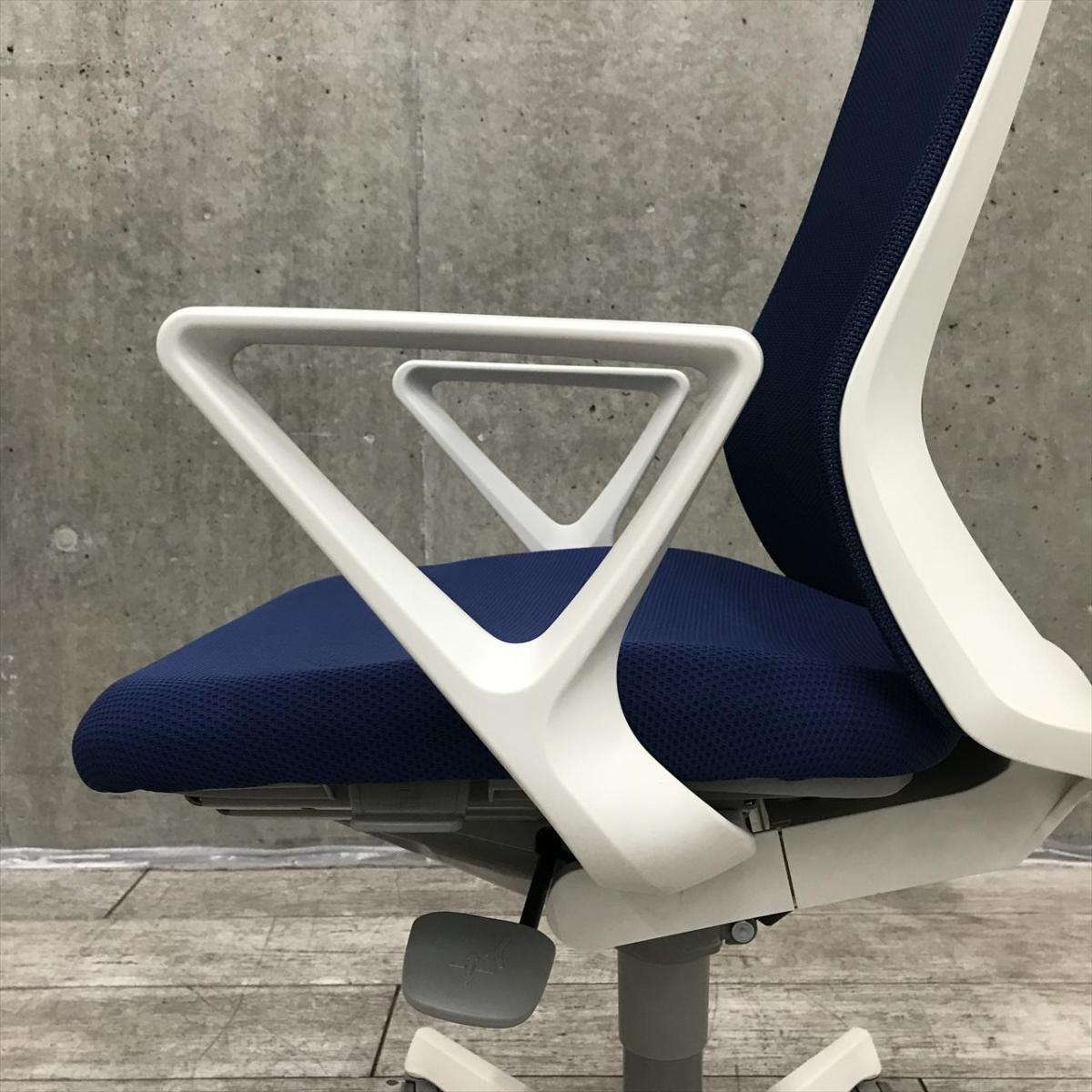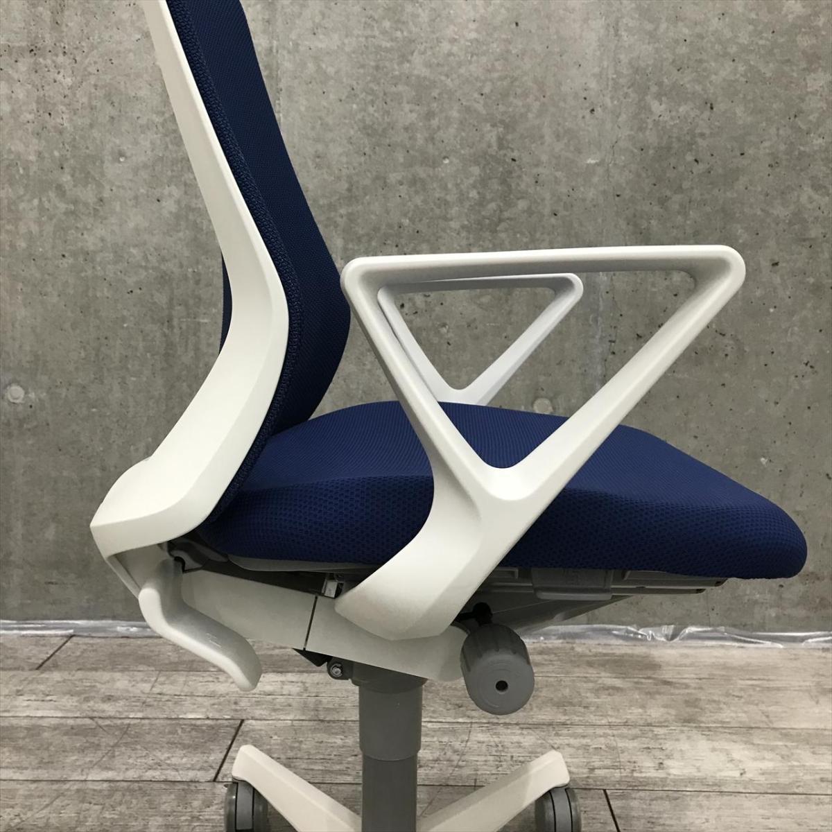 【在庫セール品・8脚限定】【T3】■オカムラ(okamura)製 フルーエント(Fluent)チェア 肘付ハイバック ■ミディアムブルー×ホワイトシェル ■背面メッシュ ■サークル肘【腰まわりをしっかりホールド! 長時間作業も快適フィット!】