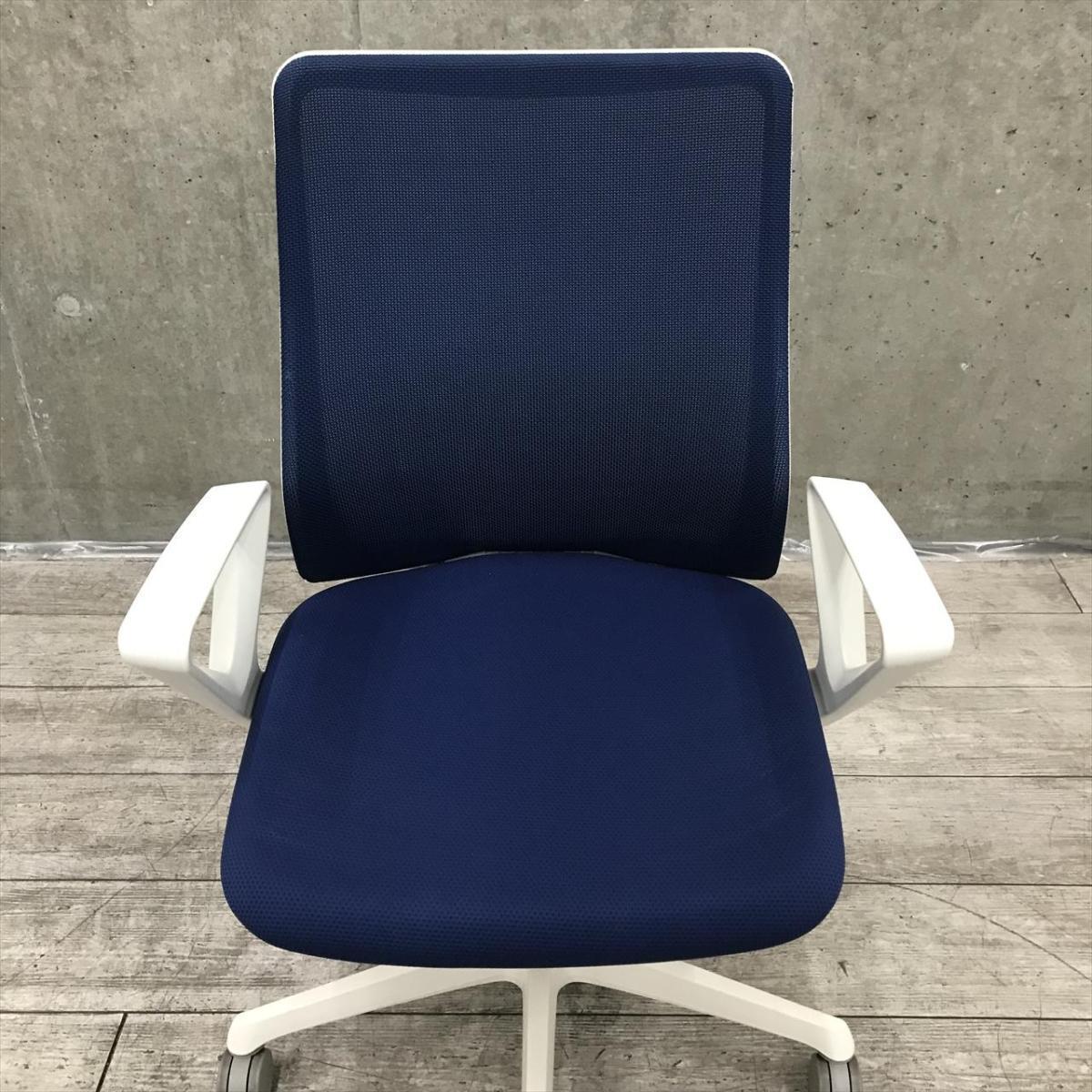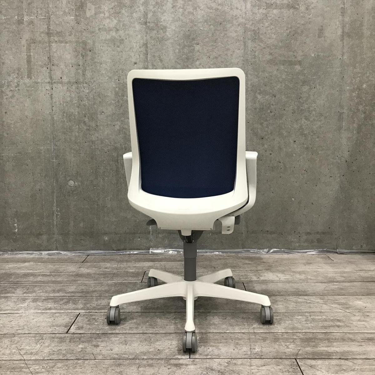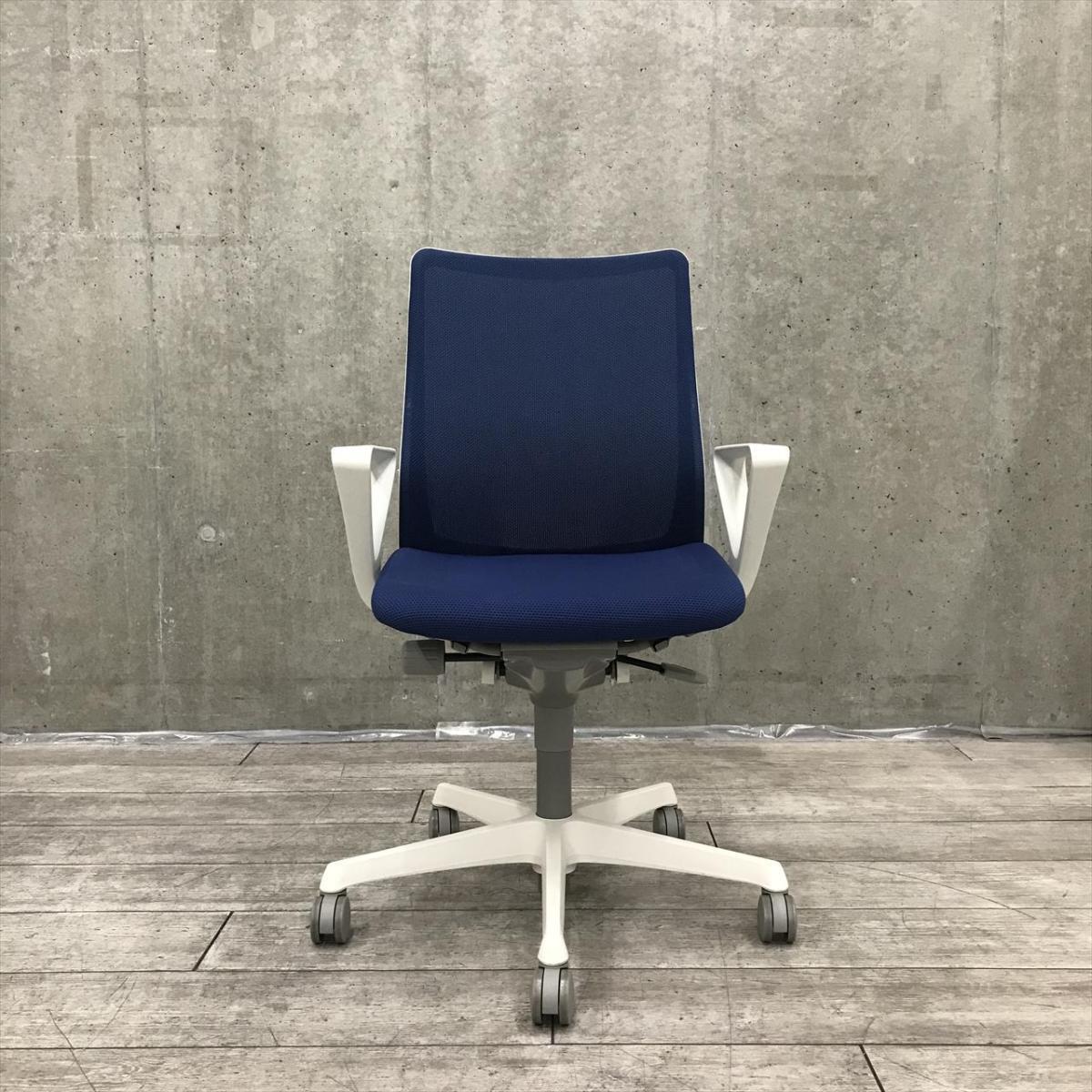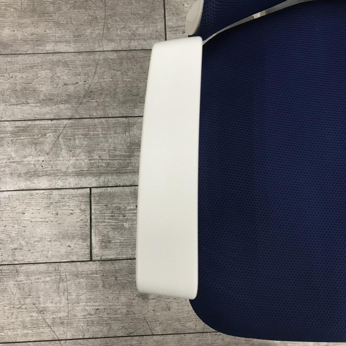 【在庫セール品・8脚限定】【T3】■オカムラ(okamura)製 フルーエント(Fluent)チェア 肘付ハイバック ■ミディアムブルー×ホワイトシェル ■背面メッシュ ■サークル肘【腰まわりをしっかりホールド! 長時間作業も快適フィット!】