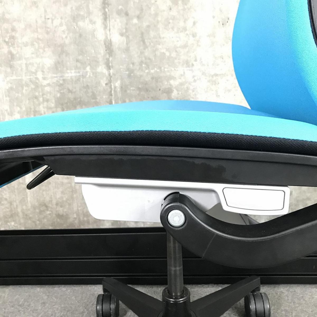 快適な座り心地に不可欠な調節機能である、上下昇降、座面の奥行き調整、リクライニングなどを備えており、操作もわかりやすく好評です。 特に、座面の奥行きは、座面下の左右に通った細いバーで調整でき、座ったままで軽やかに滑るように調整が可能です。 価格面では、新品では高めですが、中古は流通も多く、定価の3割前後の価格で高級チェアの座り心地を手に入れることができます!