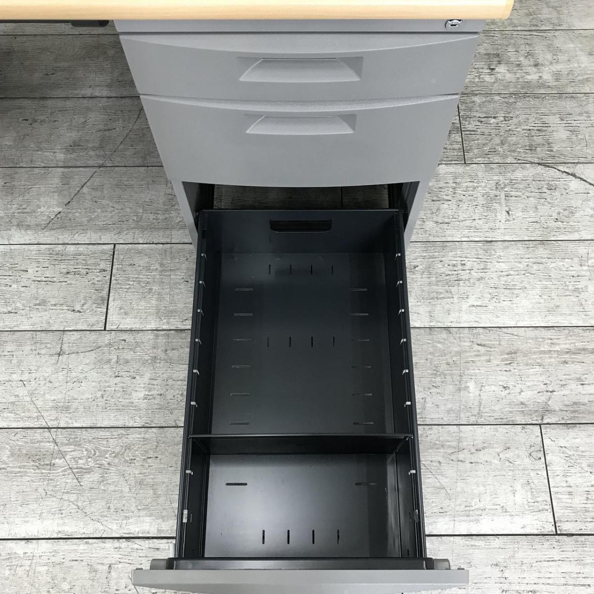 【564591】【幅1000㎜のコンパクトタイプ!使い勝手の良い3段収納の片袖机!】■イトーキ(ITOKI)製 CZNシリーズ 片袖机 ■W1000㎜ ■本体:ホワイトグレー 天板:木目調ナチュラル ■シリンダー錠 オフィスバスターズ 水戸サテライト 水戸市、日立市、ひたちなか市、鹿嶋市、神栖市、牛久市、古河市、結城市、東海村、つくば市