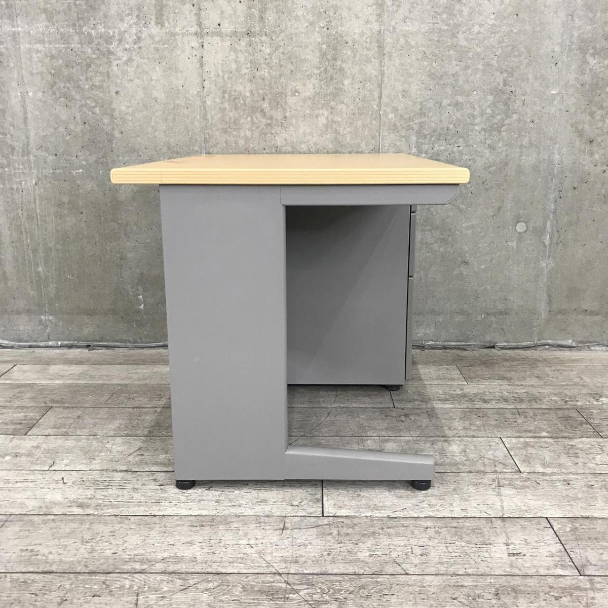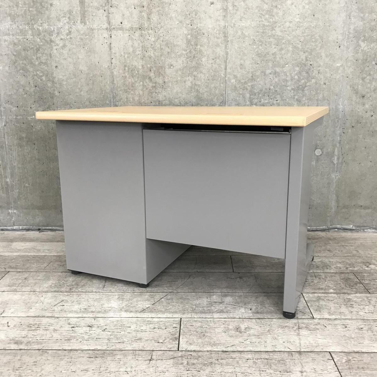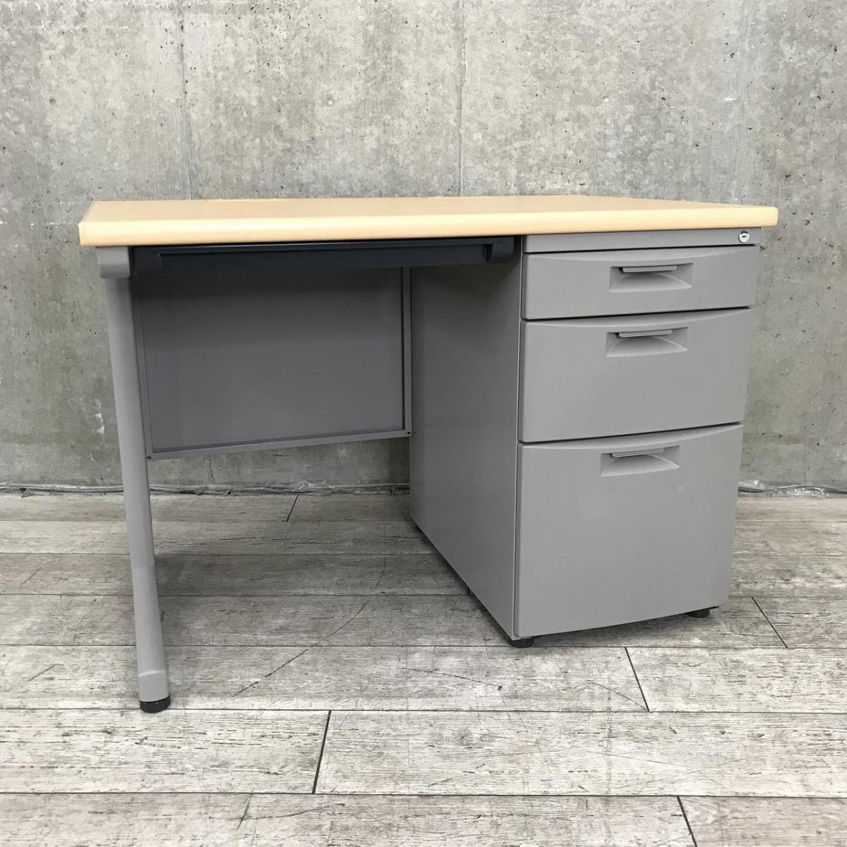 【在庫入替セール品】■イトーキ(ITOKI)製 CZNシリーズ 片袖机 ■W1000㎜ ■本体:ホワイトグレー 天板:木目調ナチュラル ■シリンダー錠