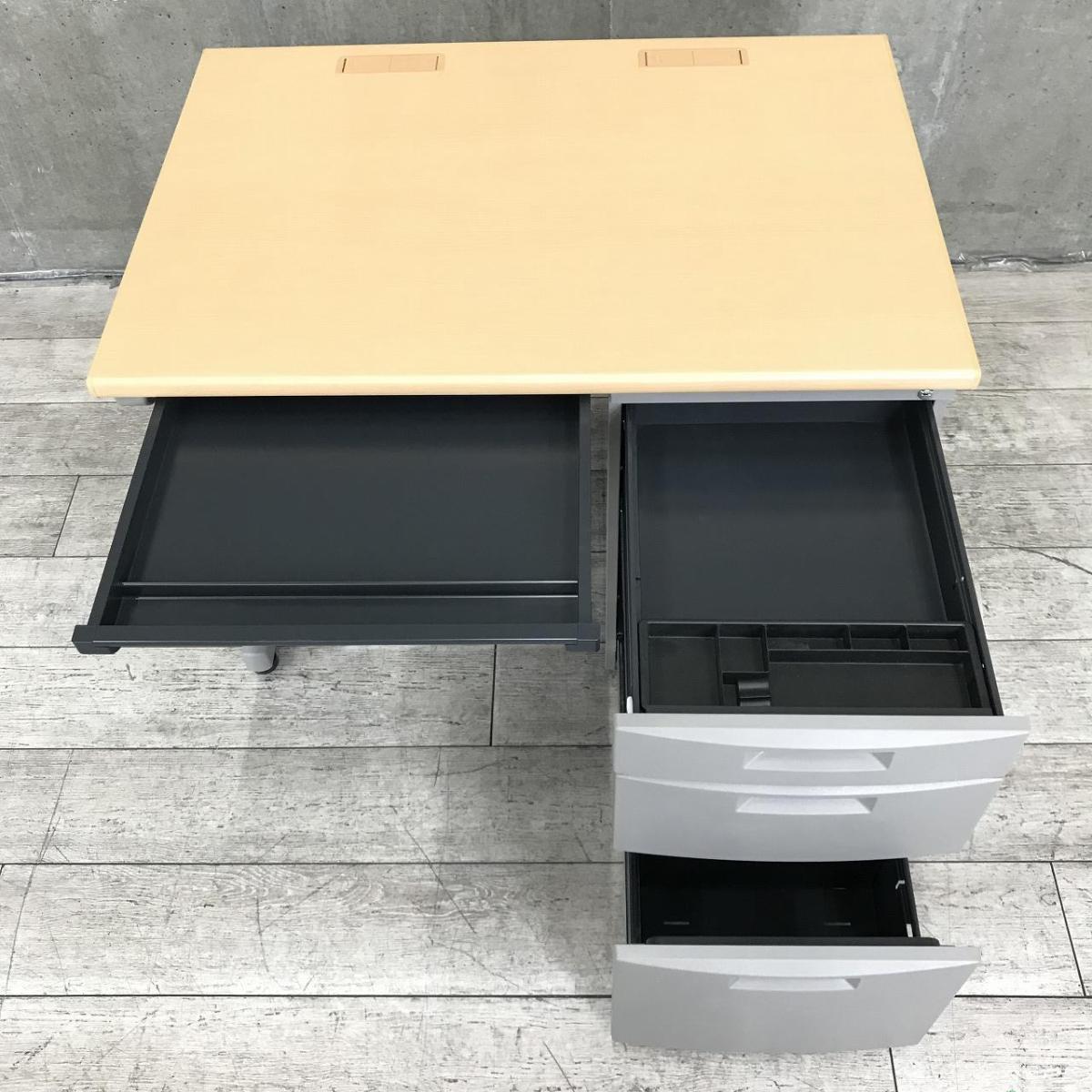 【定価約9万円】【定価約9万円】【幅1000㎜のコンパクトタイプ!使い勝手の良い3段収納の片袖机!】■イトーキ(ITOKI)製 CZNシリーズ 片袖机 ■W1000㎜ ■本体:ホワイトグレー 天板:木目調ナチュラル ■シリンダー錠