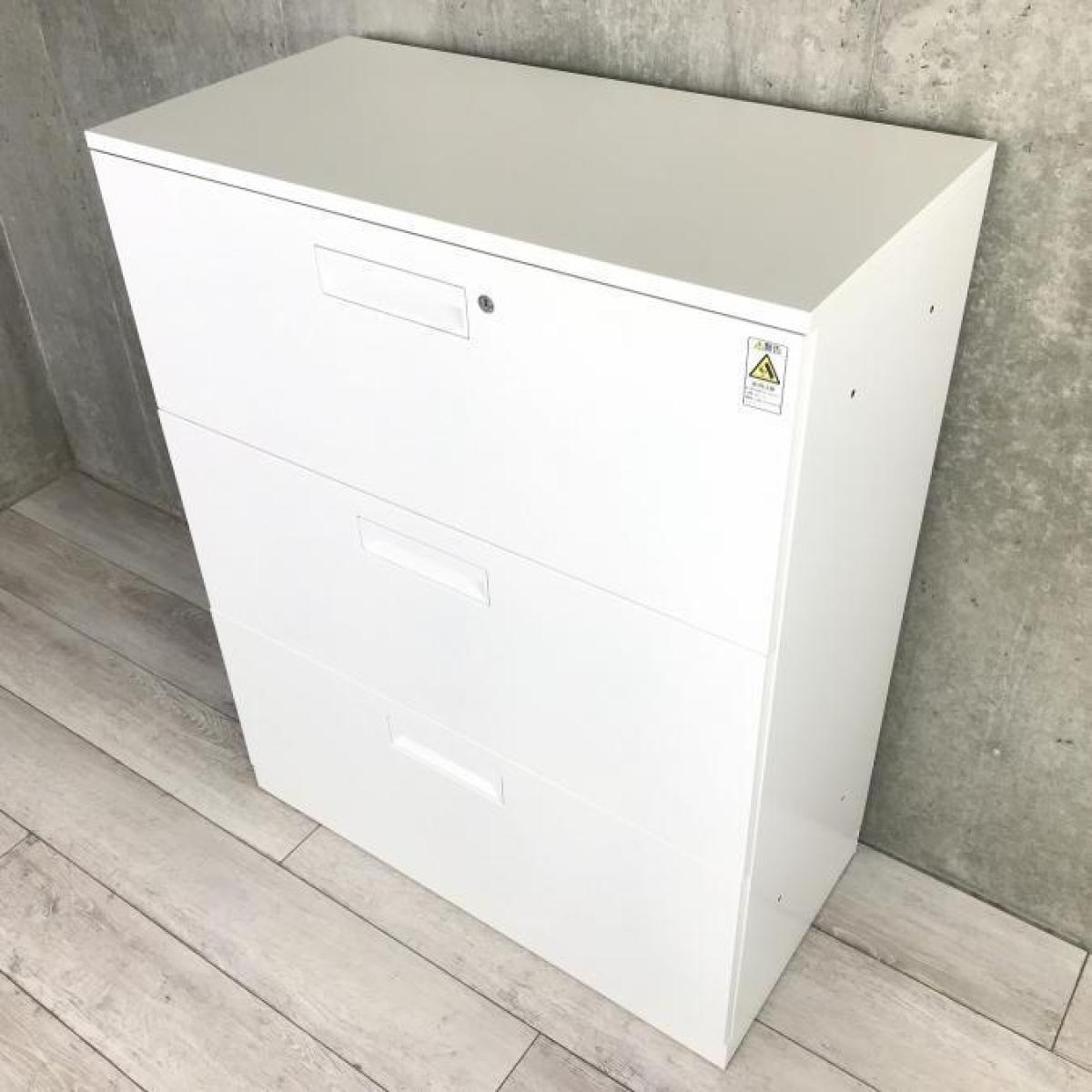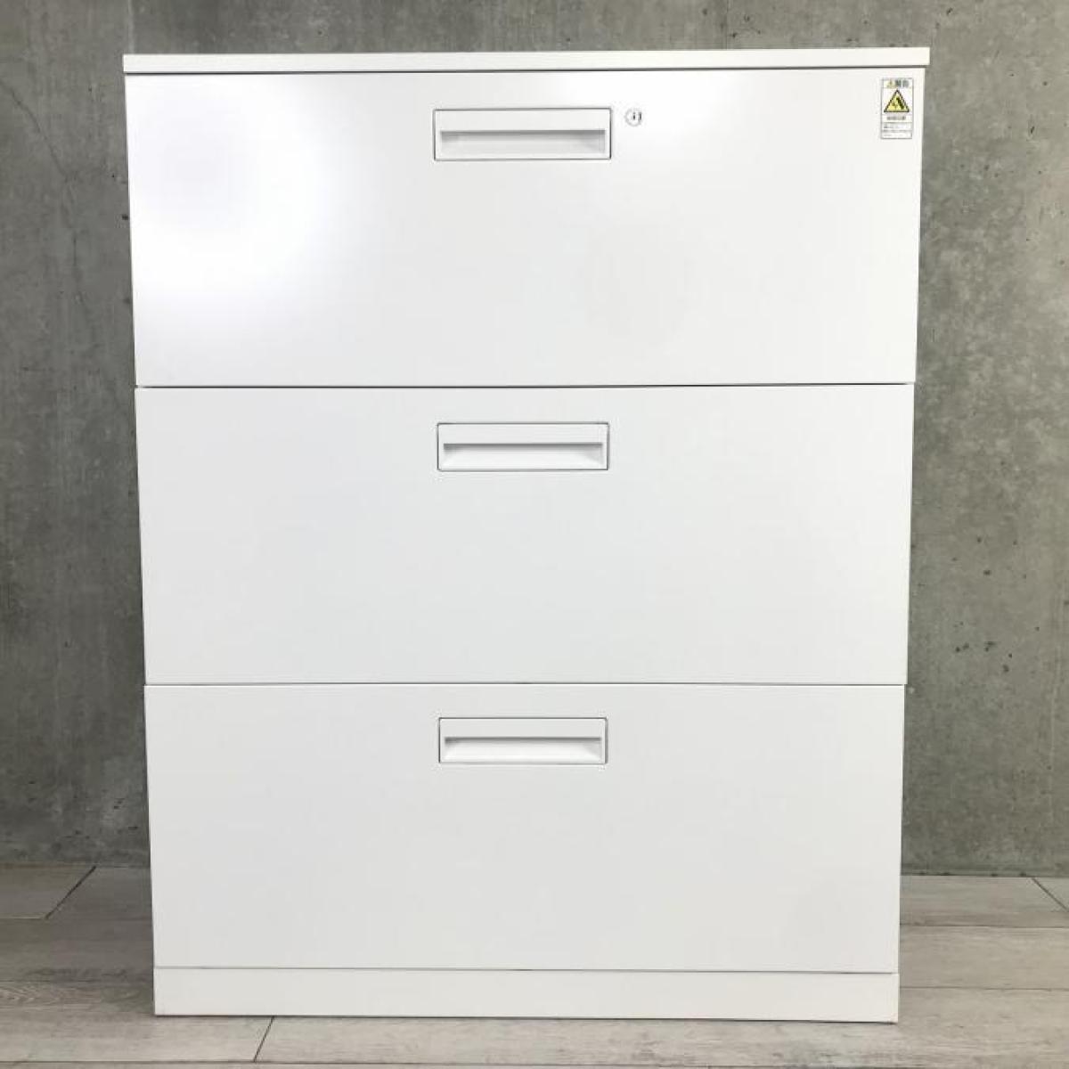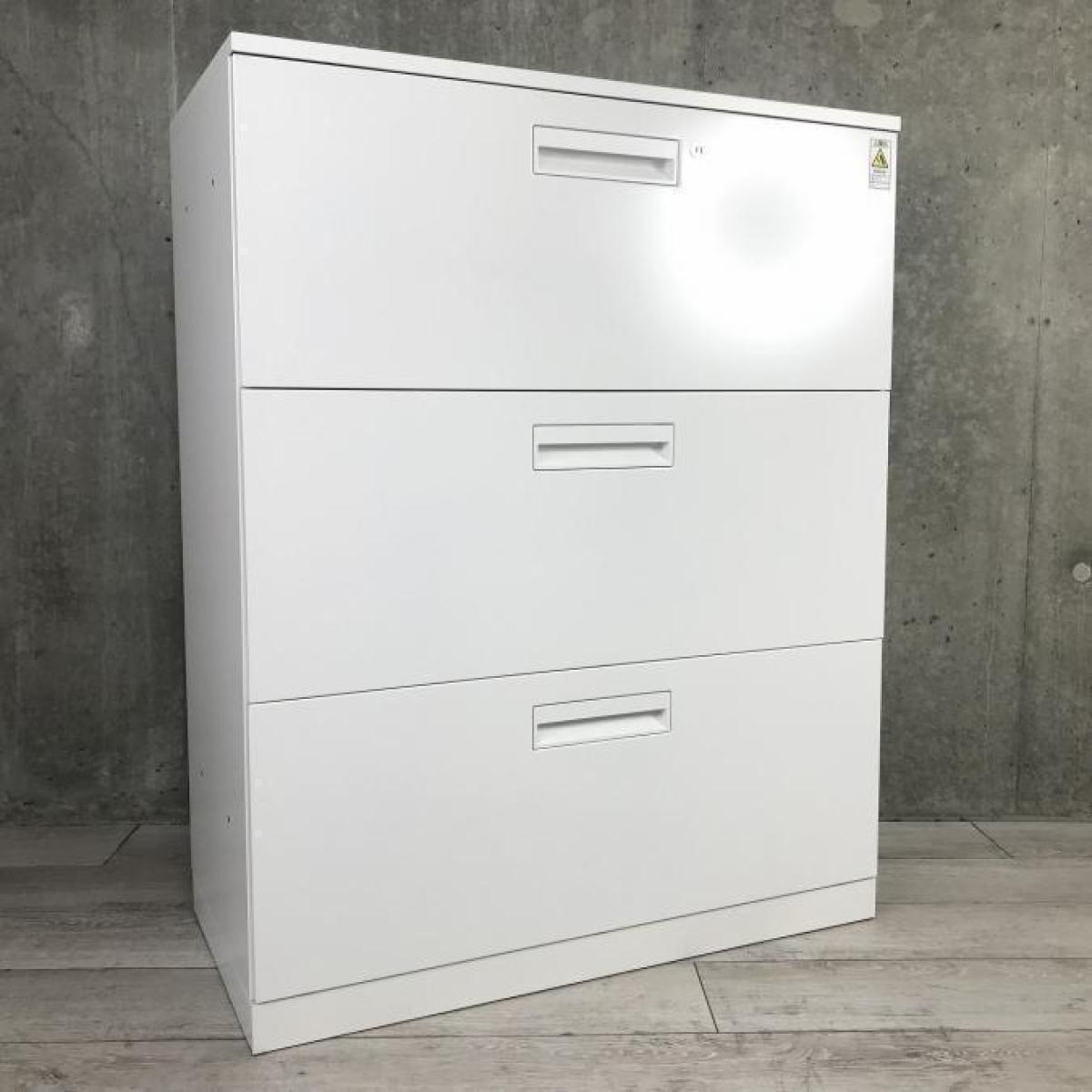 ★コクヨ製 エディア ホワイト W900xD450xH1100サイズ シリンダー錠 潔感のあるホワイト書庫! オフィスの定番収納キャビネット! 3段ラテラル書庫!!