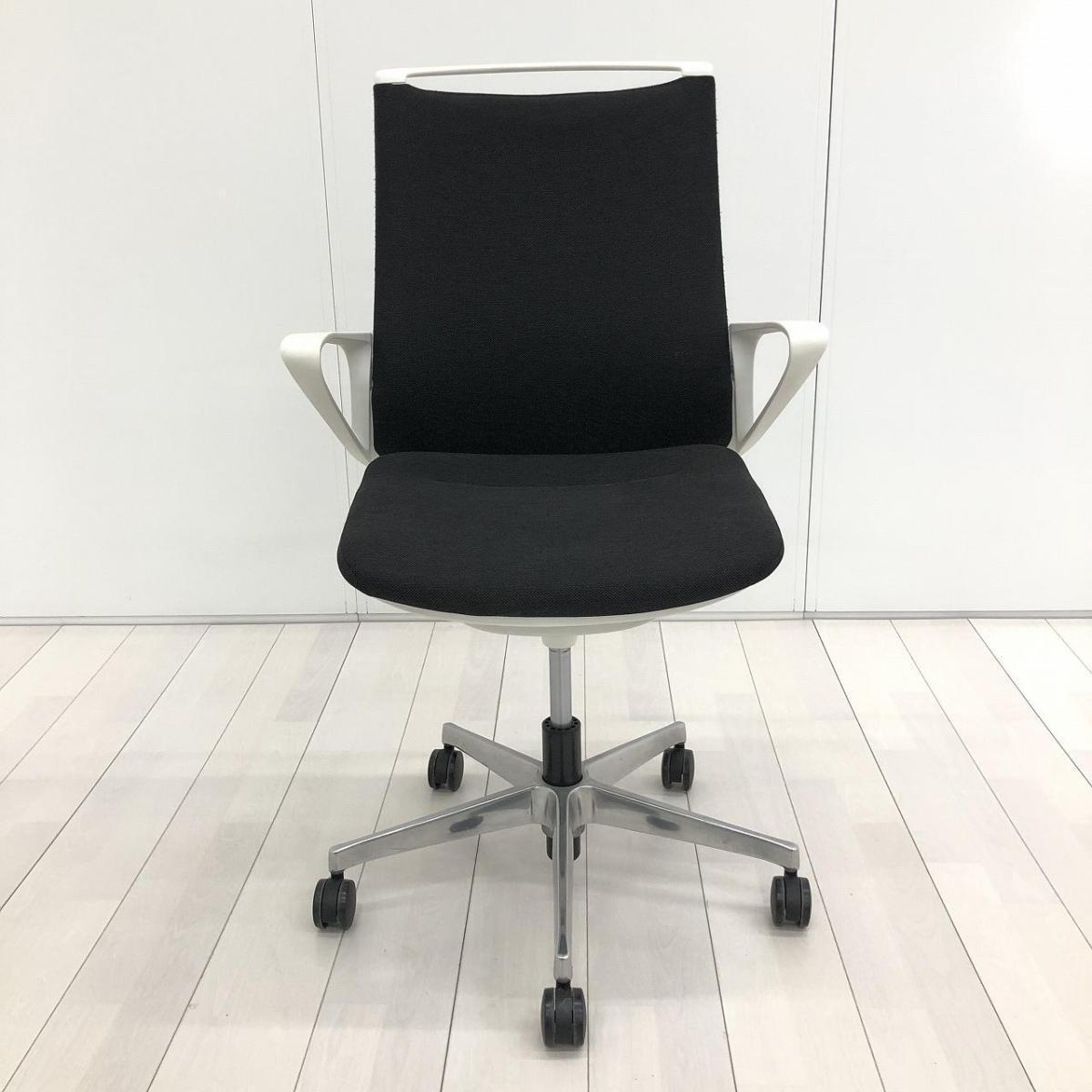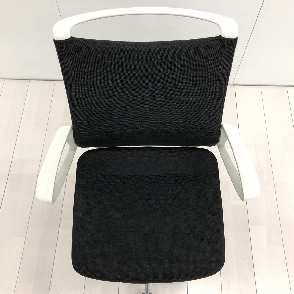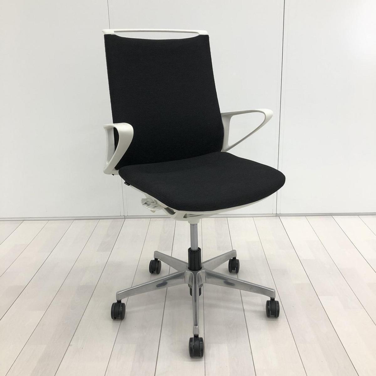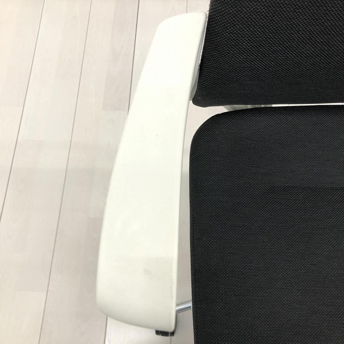 【スタイリッシュなデザインでモダンな空間を演出!】■オカムラ(okamura)製 モード(mode)チェア 肘付ミドルバック クロスバックタイプ ■ブラック×ホワイトシェル ※肘塗装はがれ