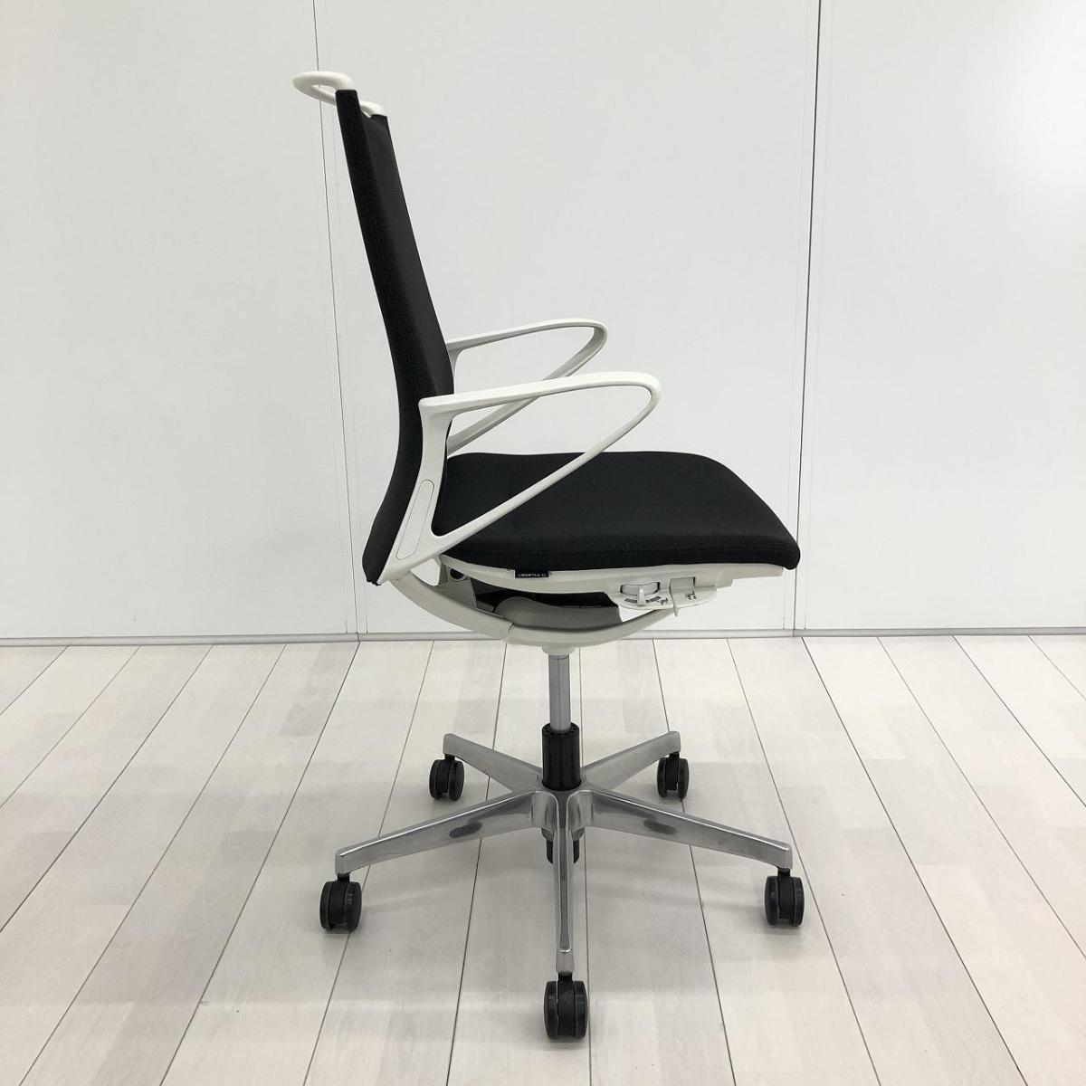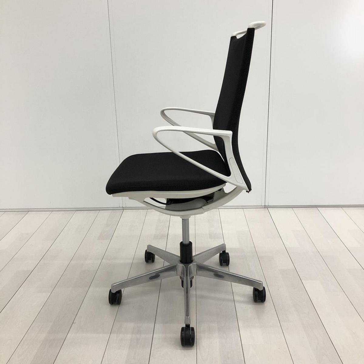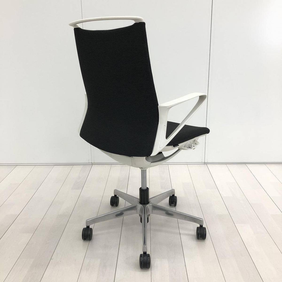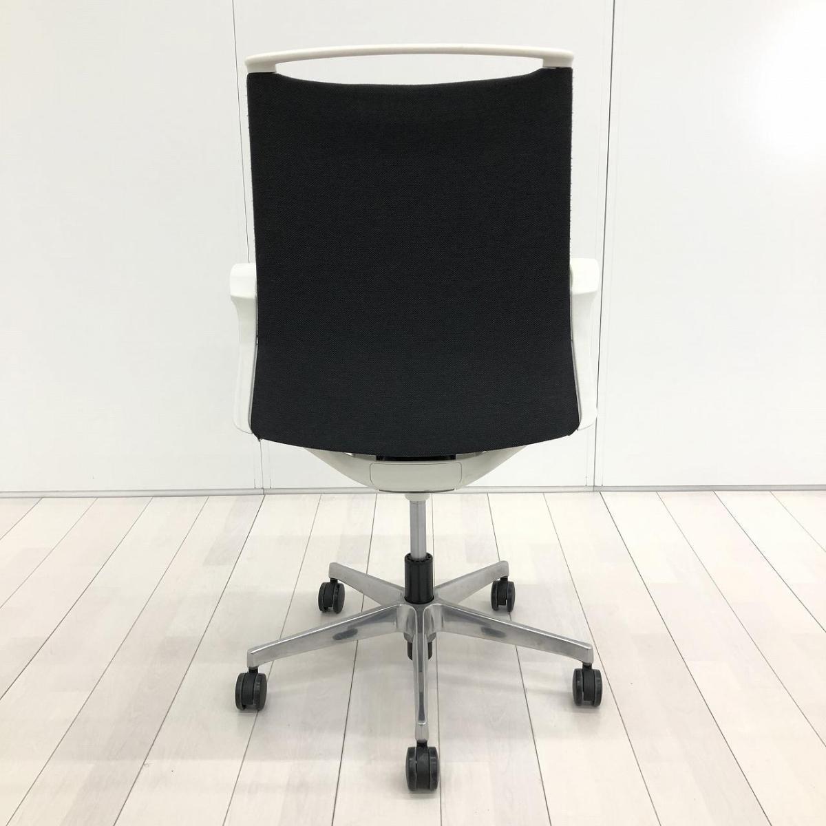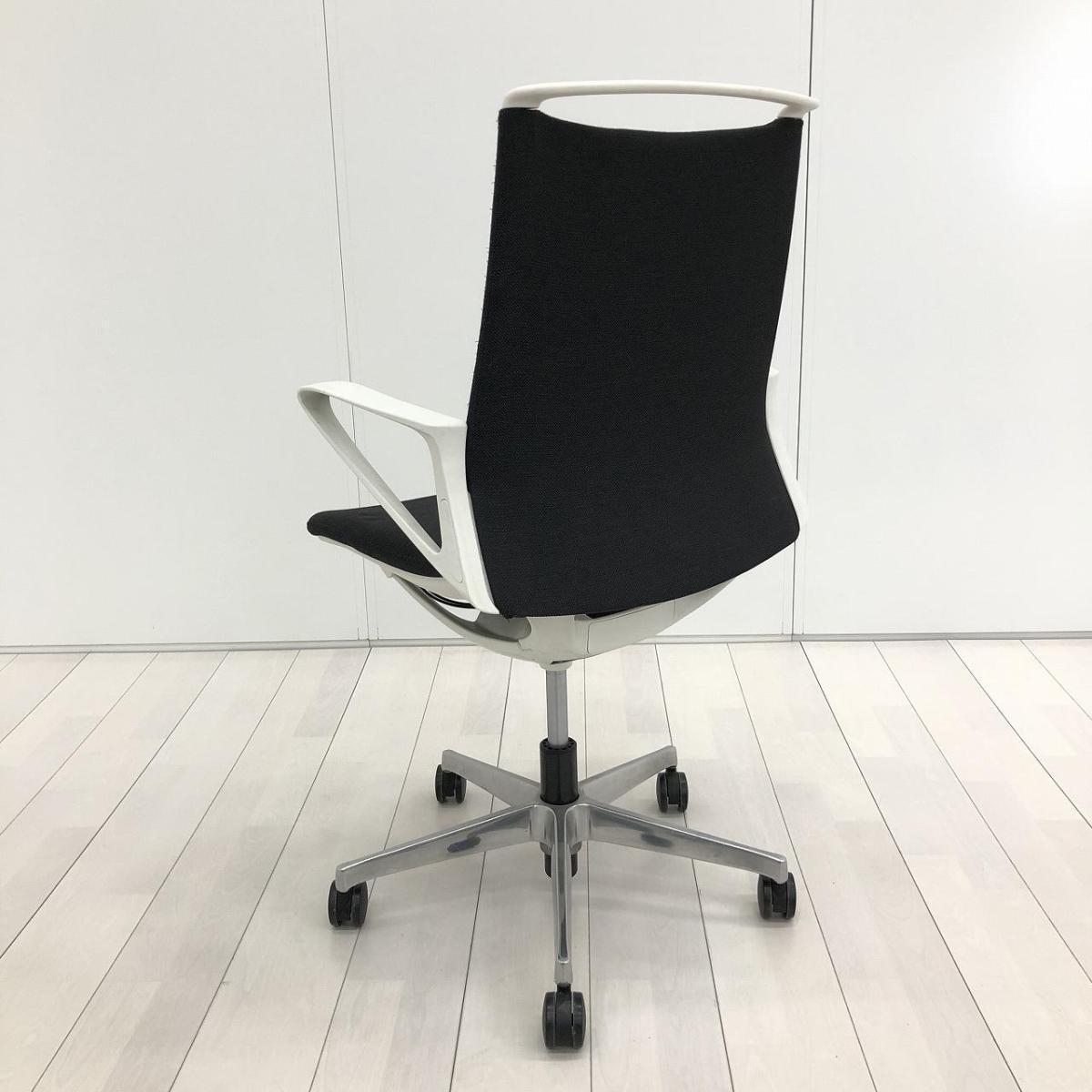【スタイリッシュなデザインでモダンな空間を演出!】■オカムラ(okamura)製 モード(mode)チェア 肘付ミドルバック クロスバックタイプ ■ブラック×ホワイトシェル ※肘塗装はがれ