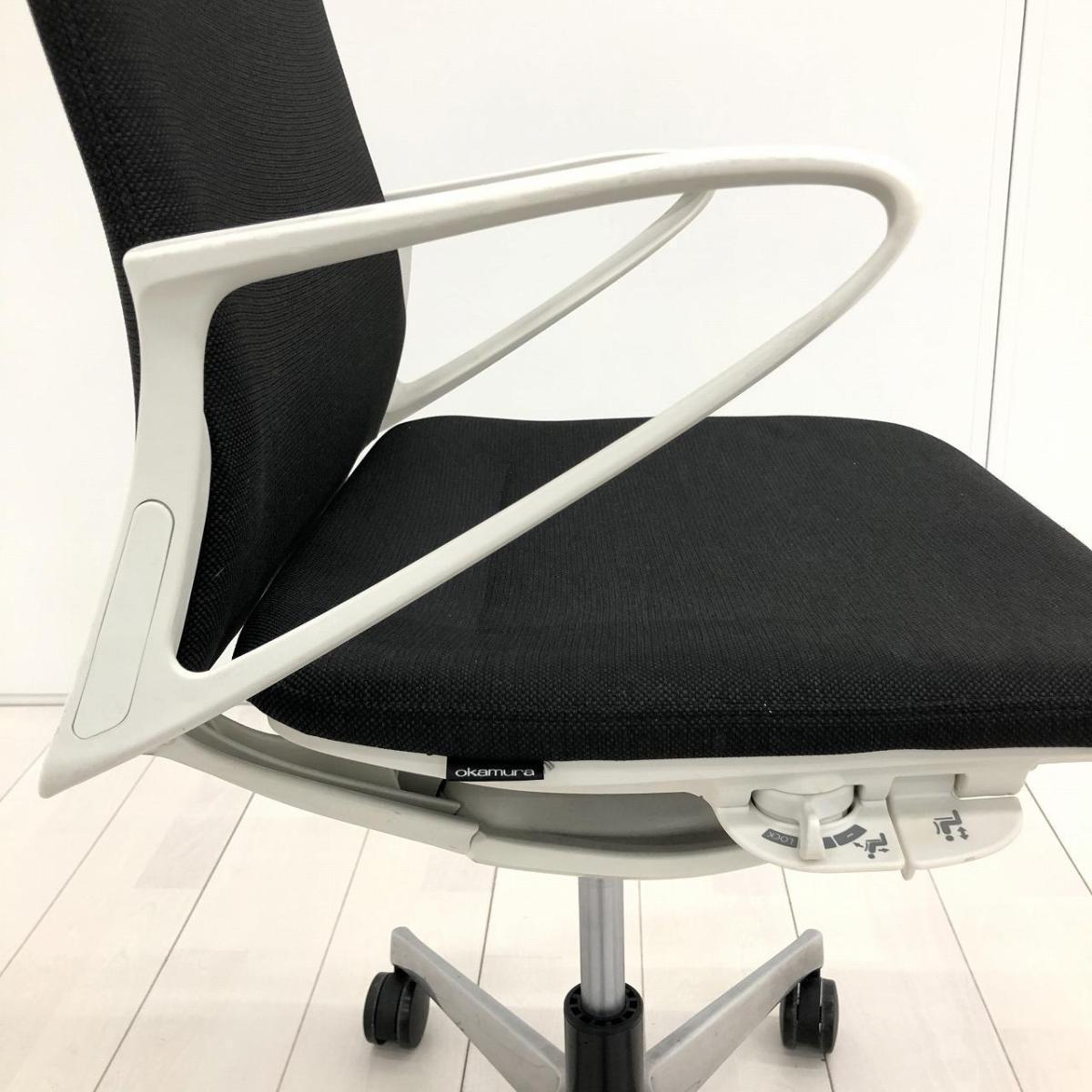【スタイリッシュなデザインでモダンな空間を演出!】■オカムラ(okamura)製 モード(mode)チェア 肘付ミドルバック クロスバックタイプ ■サークル肘 ■ブラック×ホワイトシェル ※肘塗装はがれ 【弊社使用欄:A01054230】- 新宿サテライト