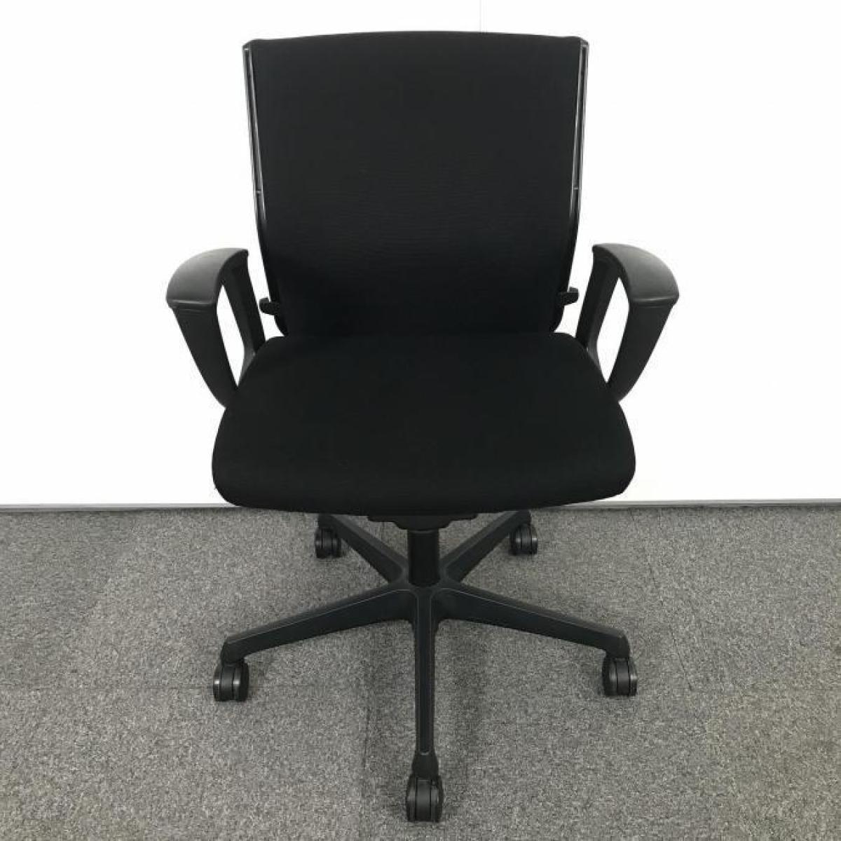 【長時間のデスクワークも快適にサポート!】■オカムラ(okamura)製 エスクード(ESCUDO)チェア ローバック肘付き ■サークル肘 ■ブラック【IB】- 宇都宮サテライト
