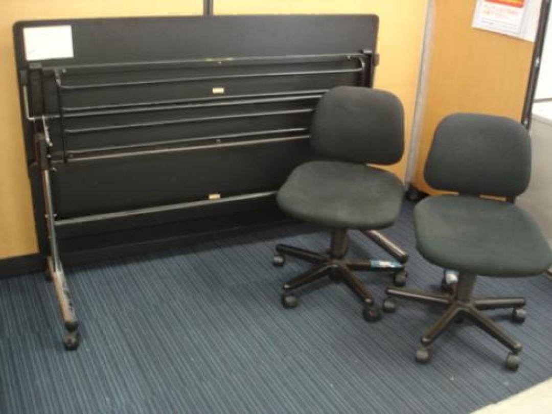 【作業スペースに!】絶対お買い得!折りたたみテーブル&キャスター付きOAチェア2脚セット【セット商品】- 日本橋店