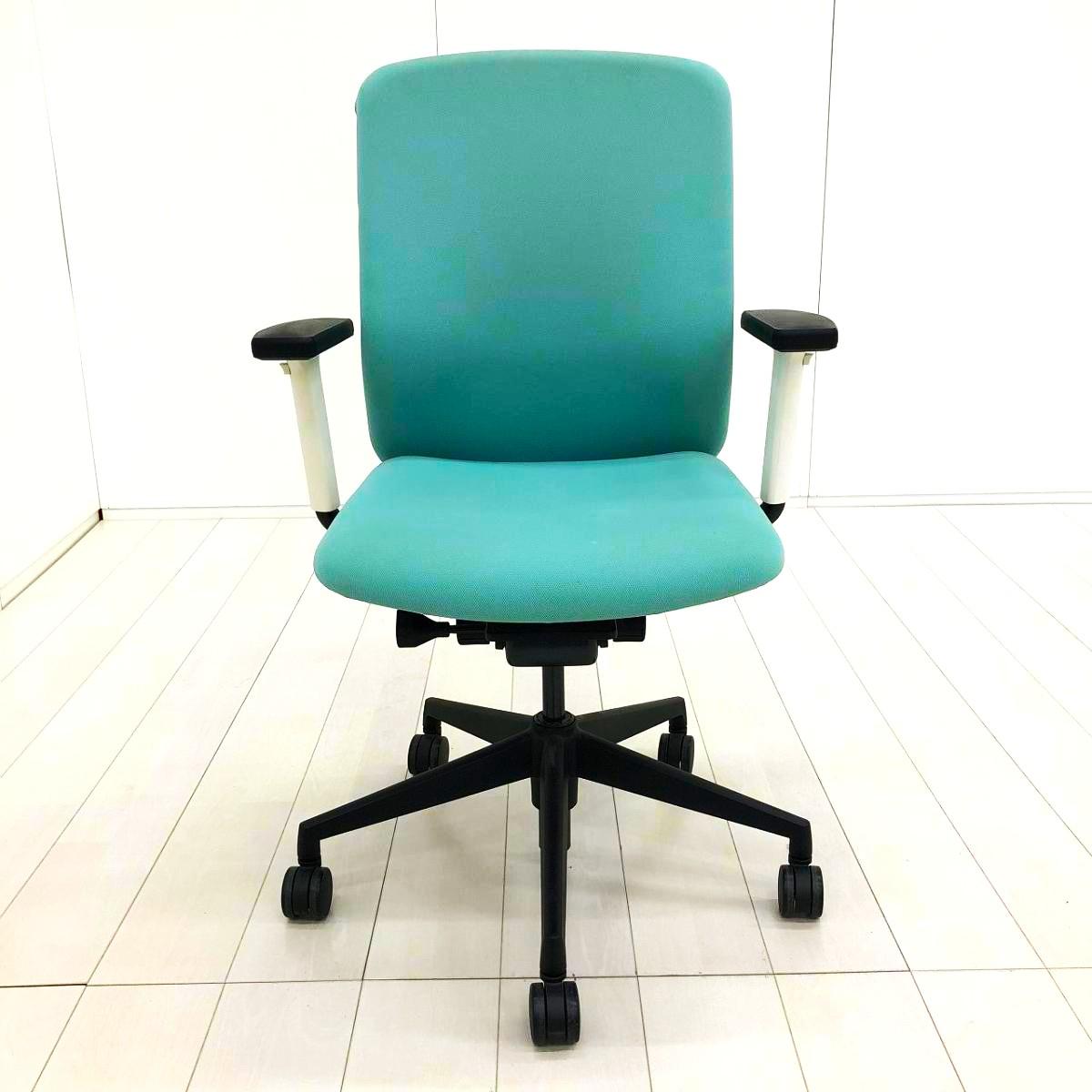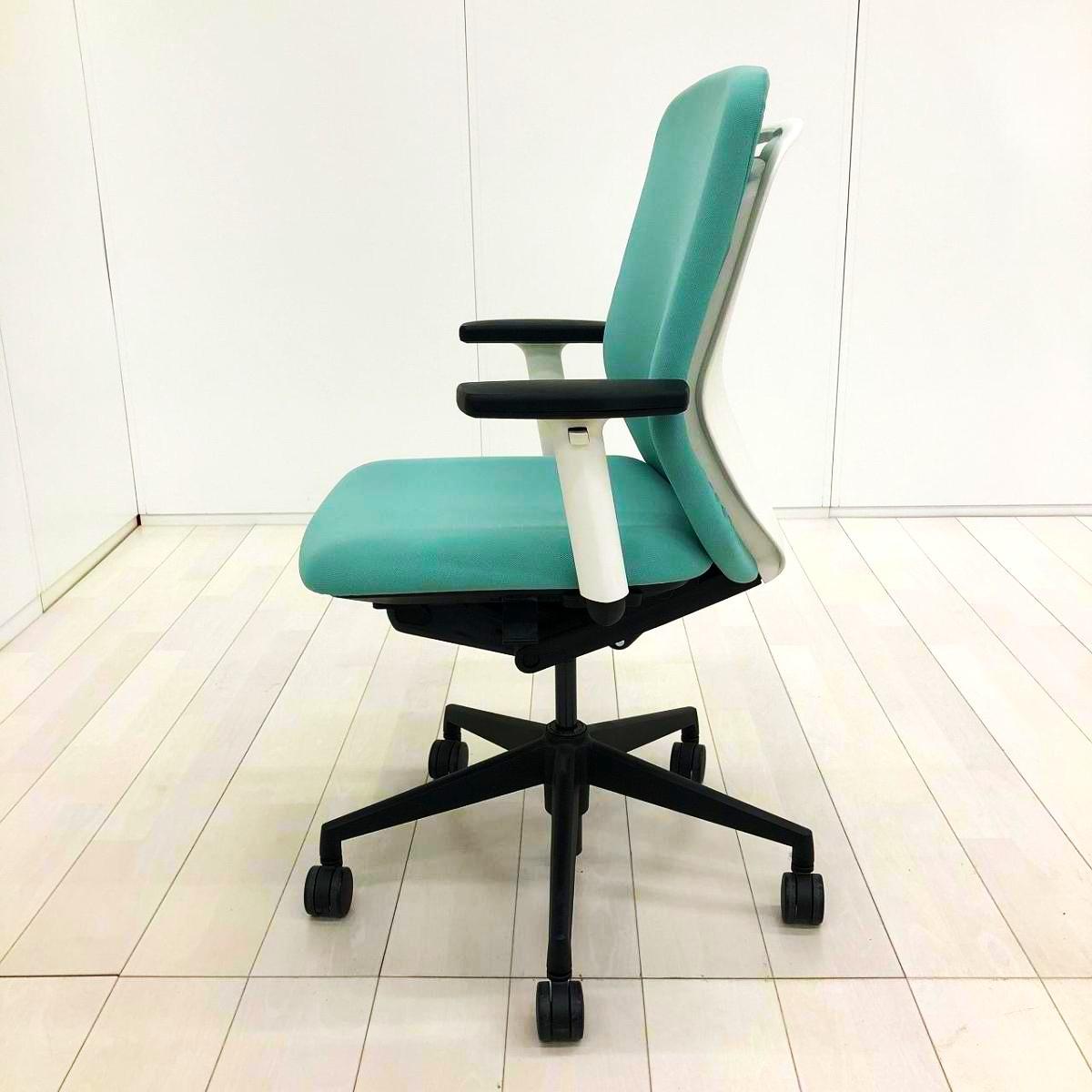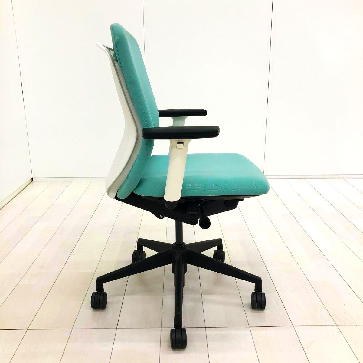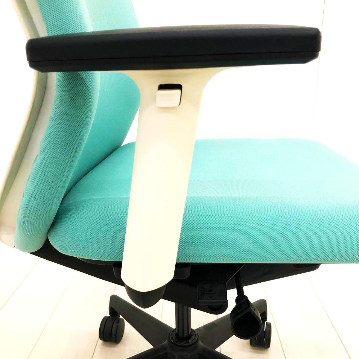 【リアルシンクロリクライニング搭載で快適な座り心地!】■ウチダ(UCHIDA)製 クレネ(KRENE)チェア 肘付ミドルバック ■可動肘 ■アクアブルー