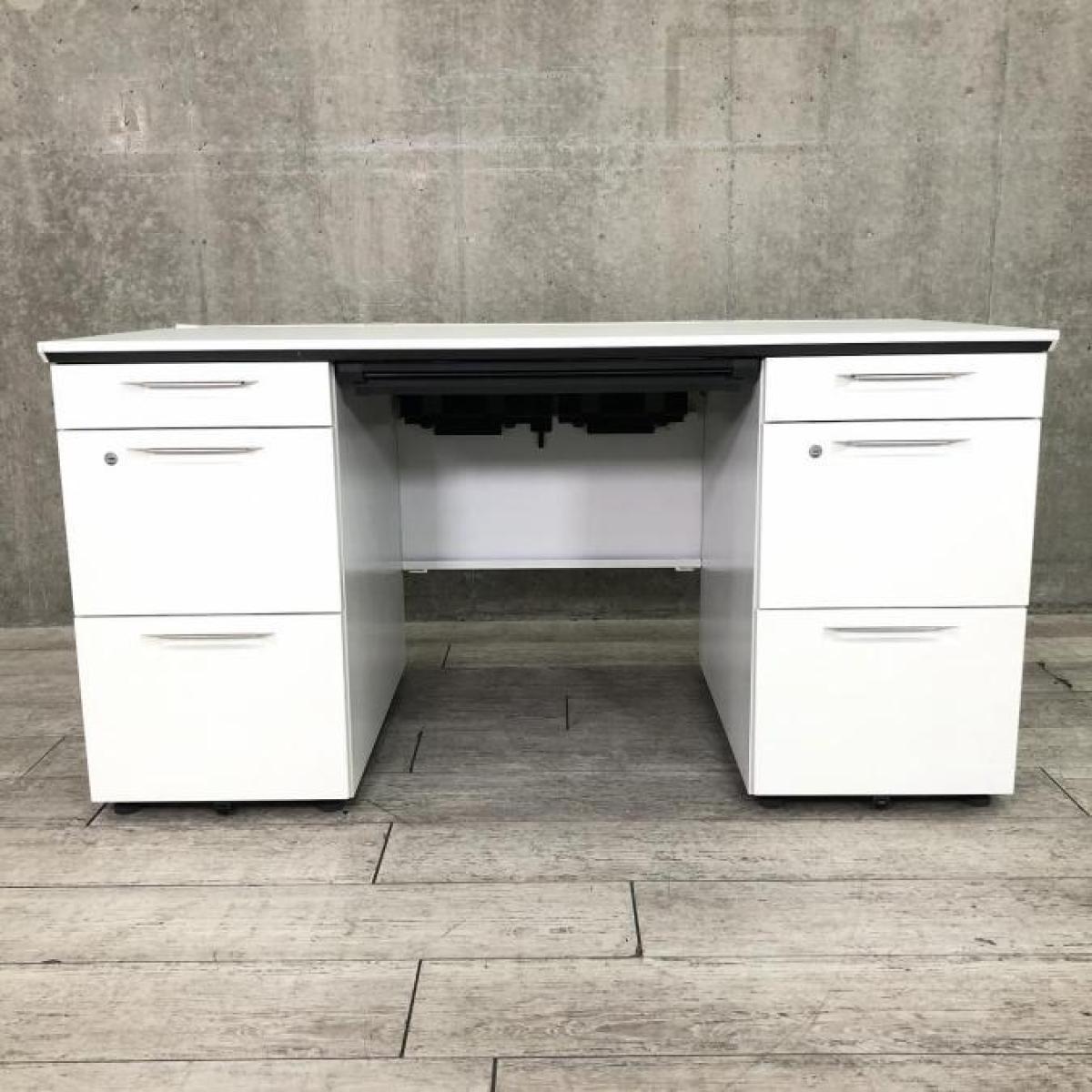 コクヨのIS両袖机入荷!中古 両袖 机 事務机 オフィス ホワイト デスク W1400×D700×H720 KOKUYO IS スタンダードデスク オフィスバスターズ 外部倉庫在庫