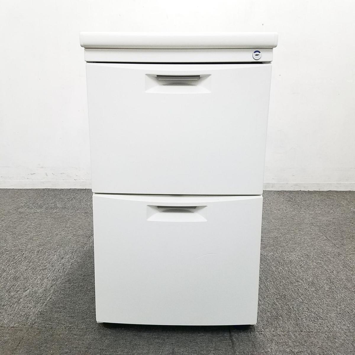 イトーキ CZシリーズ 2段脇机 A4ファイル×2段収納 鍵付き シリンダー錠 ホワイト