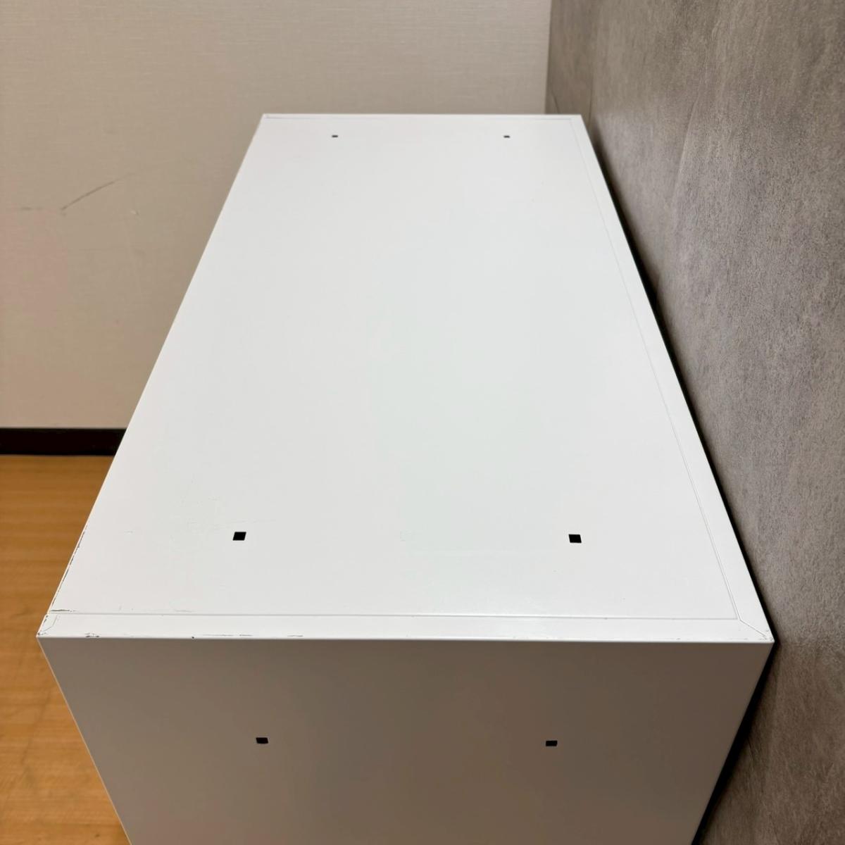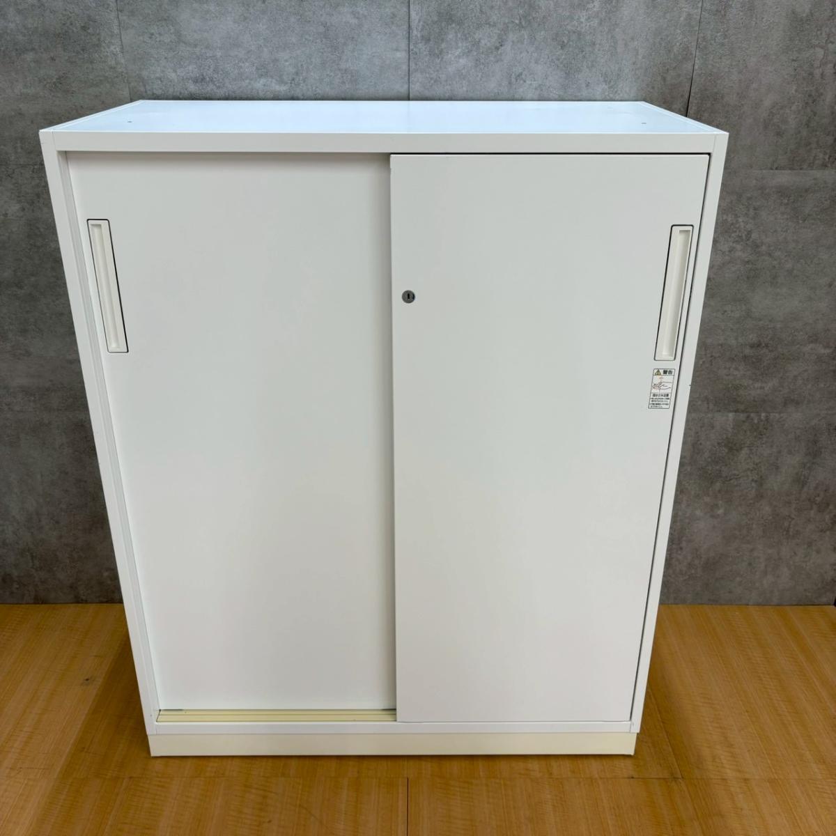★【T3】【T12】【商品入替のため、残り1台限り】コクヨ製 エディア ホワイト 2枚タイプ W900xD450xH1130サイズ ホワイト天板付 シリンダー 導線を確保できる引き違い戸のキャビネット! ローキャビネット 引き違い書庫!!【管理番号:A01036262】