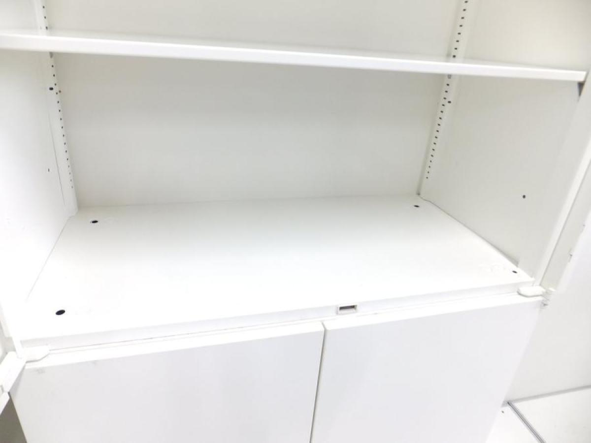 【西】状態良好商品!!★納品・設置に関してご気軽にお問い合わせください!!!★【定価約15万円】マルチアクセスハンドルで開閉がスムーズ!ホワイトの両開き上下書庫セット ■オカムラ製 レクトライン 両開き+両開き 書庫セット ホワイト【チェア】【椅子】【イス】【事務椅子】【デスク】【机】【書庫】【書棚】【棚】【ラック】【収納】【格安】【安い】【メーカー】【レイアウト変更】【模様替え】