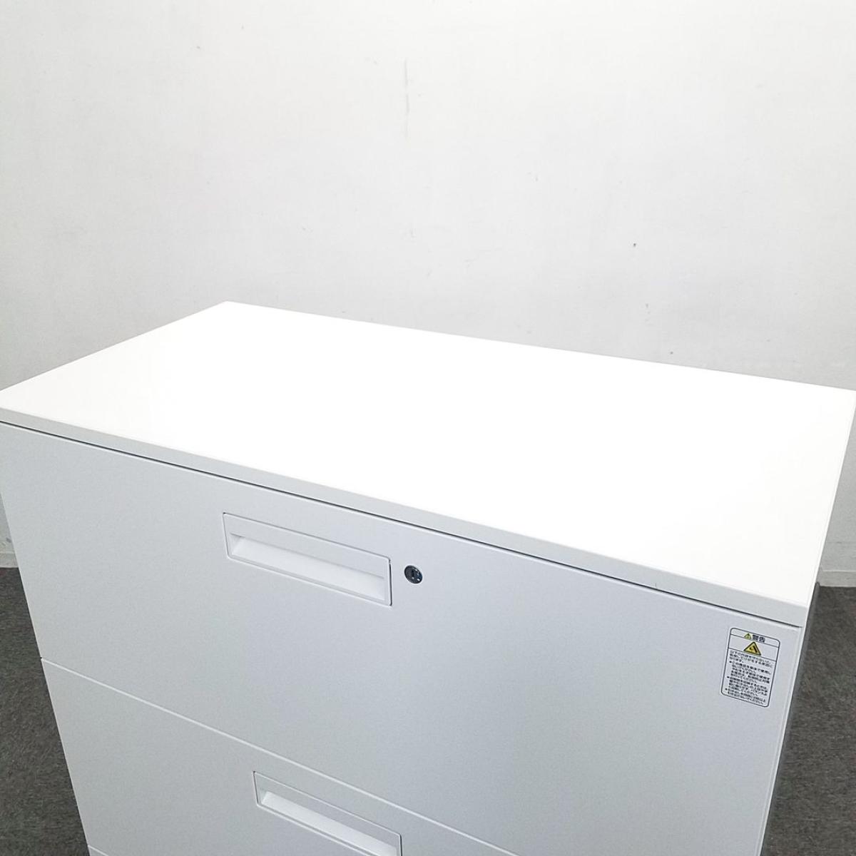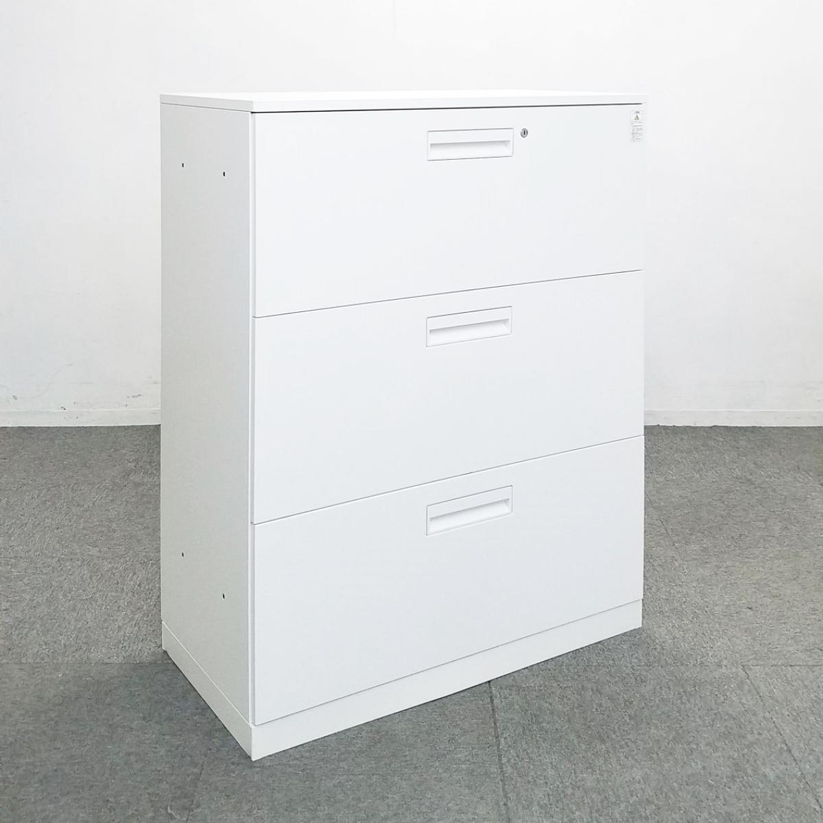 ★コクヨ製 エディア ホワイト W900xD450xH1100サイズ シリンダー錠 潔感のあるホワイト書庫! オフィスの定番収納キャビネット! 3段ラテラル書庫!!