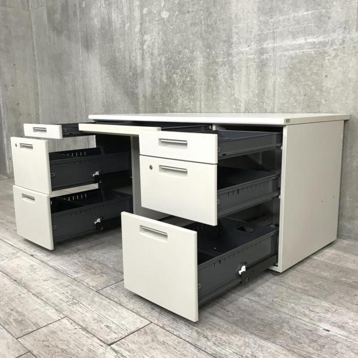 引き出しの数が多い両側袖付きデスク!
