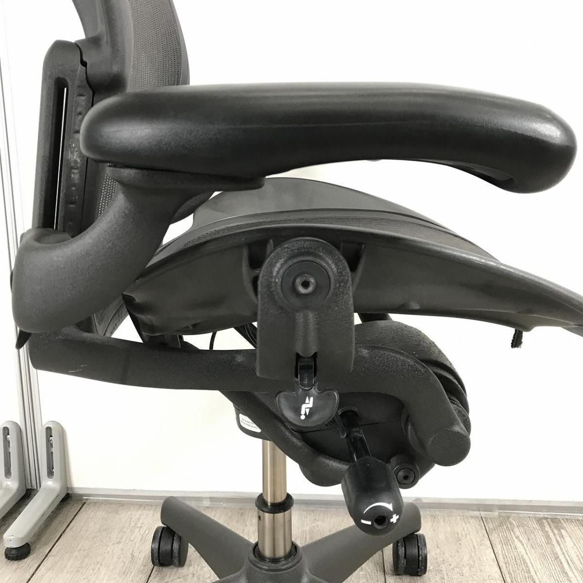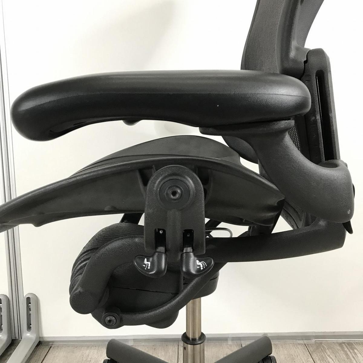【オフィスチェアの最高峰!世界的にも有名なワーキングチェアが登場!在宅ワークにもおすすめ!】■ハーマンミラー(HermanMiller)製 アーロンチェア(AeronChair) Bサイズ ■ブラック ■メッシュ ■可動肘 肘フレーム傷あり、脚塗装剥がれ有り【AD】