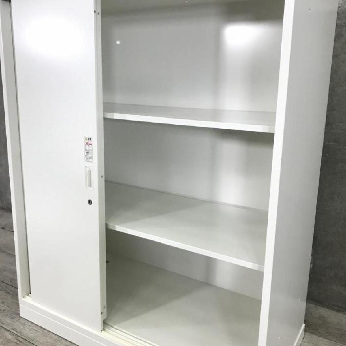 【スライド式の引き戸なので開閉スペースに困らない!】■オカムラ製 レクトラインシリーズ 3枚引き違い ローキャビネット ホワイト シリンダー錠 中古家具 九州最大級《オフィスバスターズ福岡博多店は、福岡を拠点として、日本全国へ中古オフィス用品・オフィス家具を提供しております》