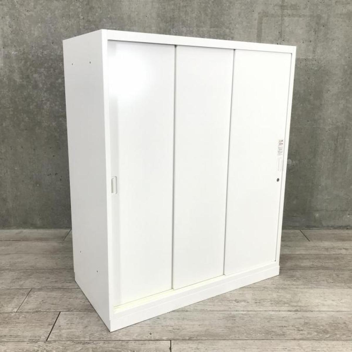 【スライド引き戸だから開閉スペースに困りません!】【人気のホワイト書庫!】■okamura(オカムラ)製 レクトラインシリーズ 3枚戸タイプ 引き違い書庫 ■色:ホワイト ■シリンダー鍵 【上下連結可能!】- 大手町・神田サテライト