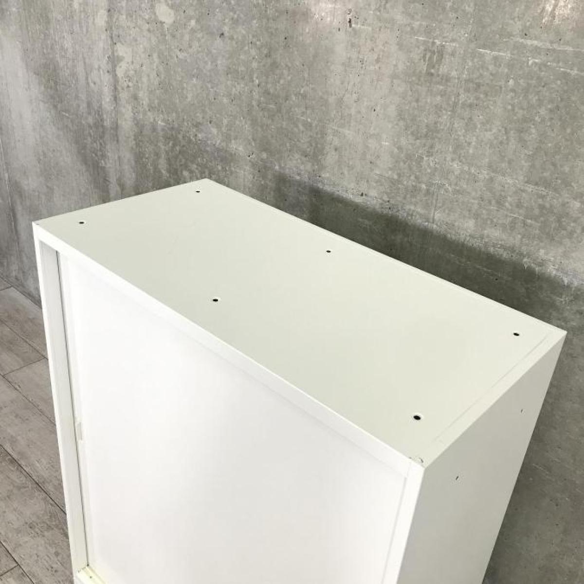 オカムラ製 レクトライン ホワイト W900サイズ W900xD450xH1115サイズ シリンダー ナチュラル天板付 スライド引き戸だから開閉スペースに困らない! A4ファイル3段収納可能! ローキャビネット 引違い書庫!!