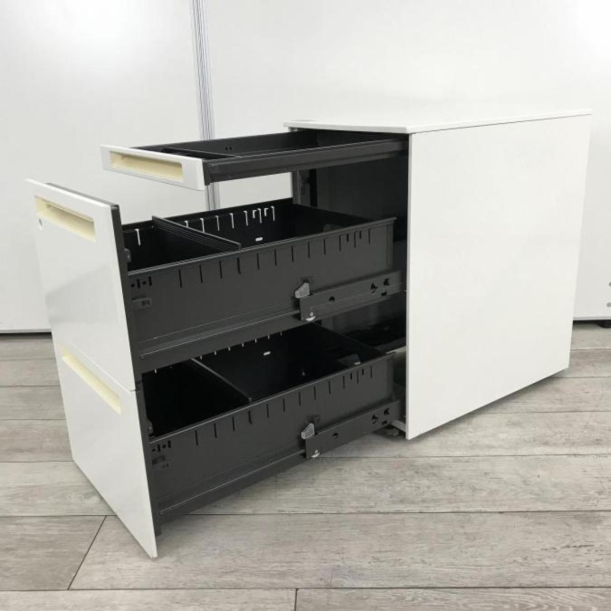 フリーアドレスの必須品!収納とワークスペースの拡張にオススメ!珍しい1段め深型タイプ! ■オカムラ/ アドバンスシリーズ(ADVANCE)/ホワイト 3段ワゴン フリアド用 H650㎜ シリンダー錠