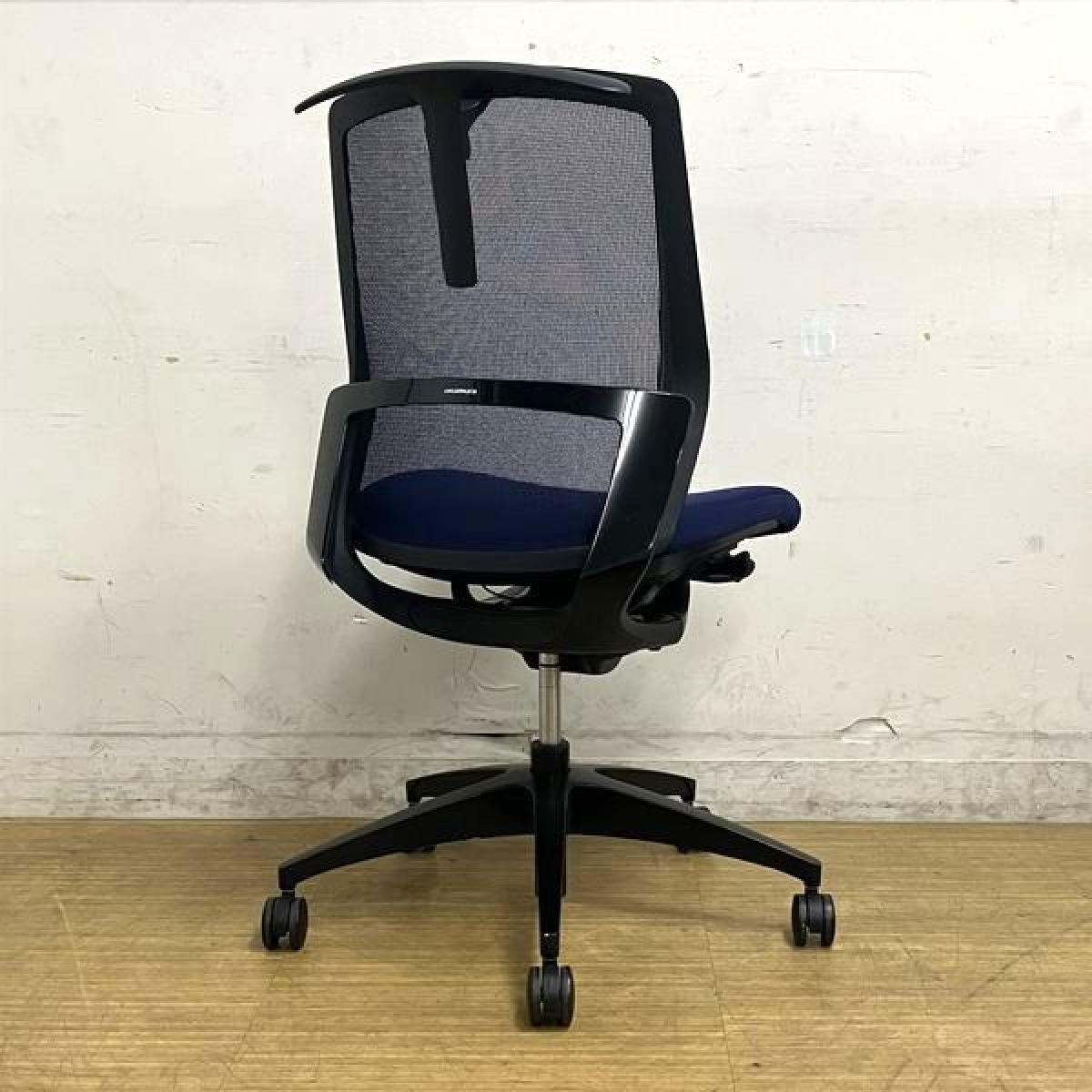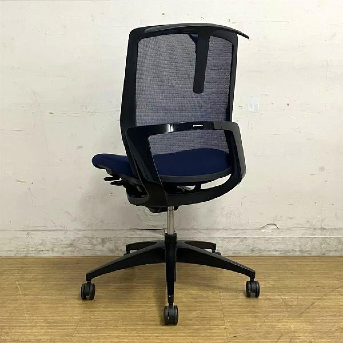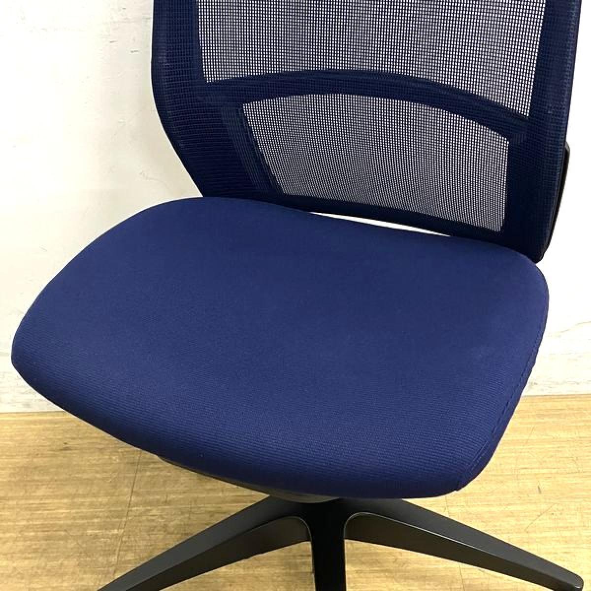 【在庫入替セール】オカムラ フィノラ ミドルバック 肘無しチェア ダークブルー×ブラックボディ×ブラック脚 座クッション コートハンガー付き- 名古屋千種店