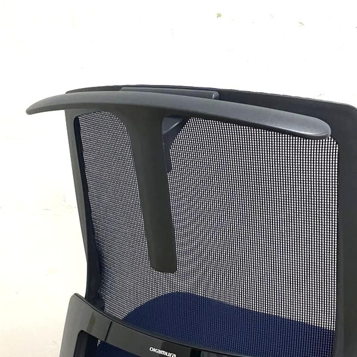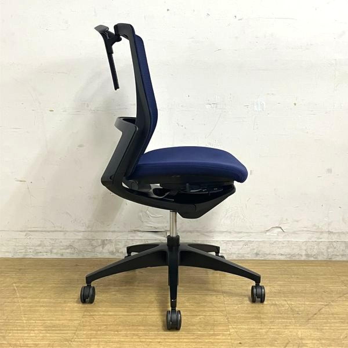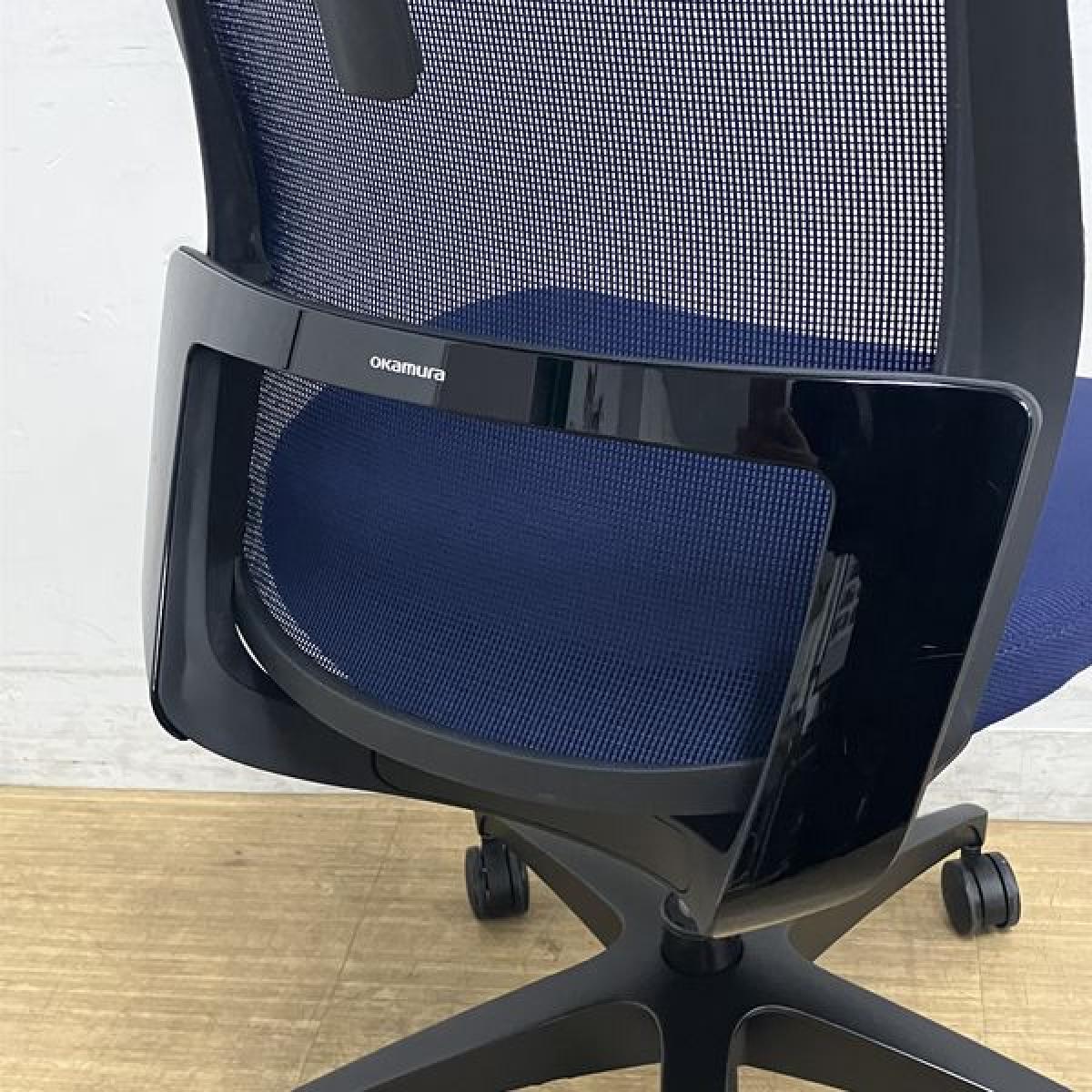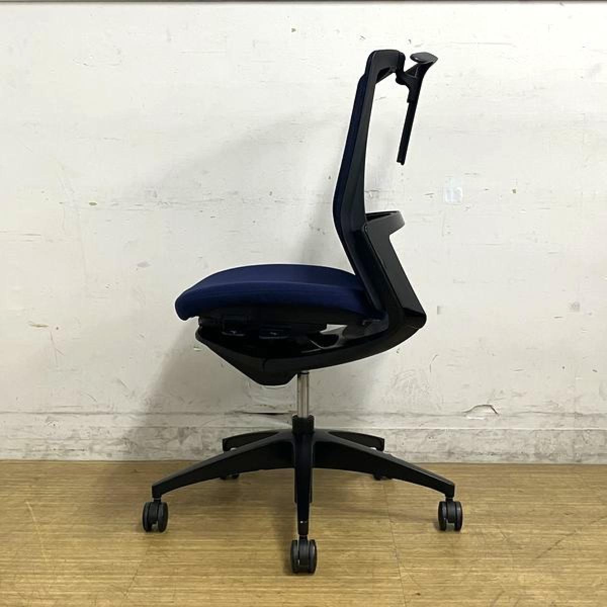 【在庫入替セール】オカムラ フィノラ ミドルバック 肘無しチェア ダークブルー×ブラックボディ×ブラック脚 座クッション コートハンガー付き- 名古屋千種店