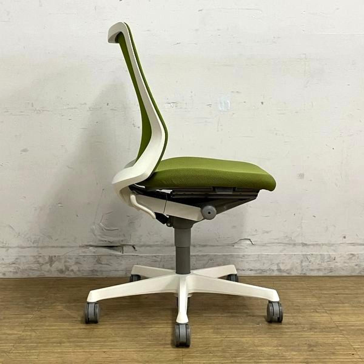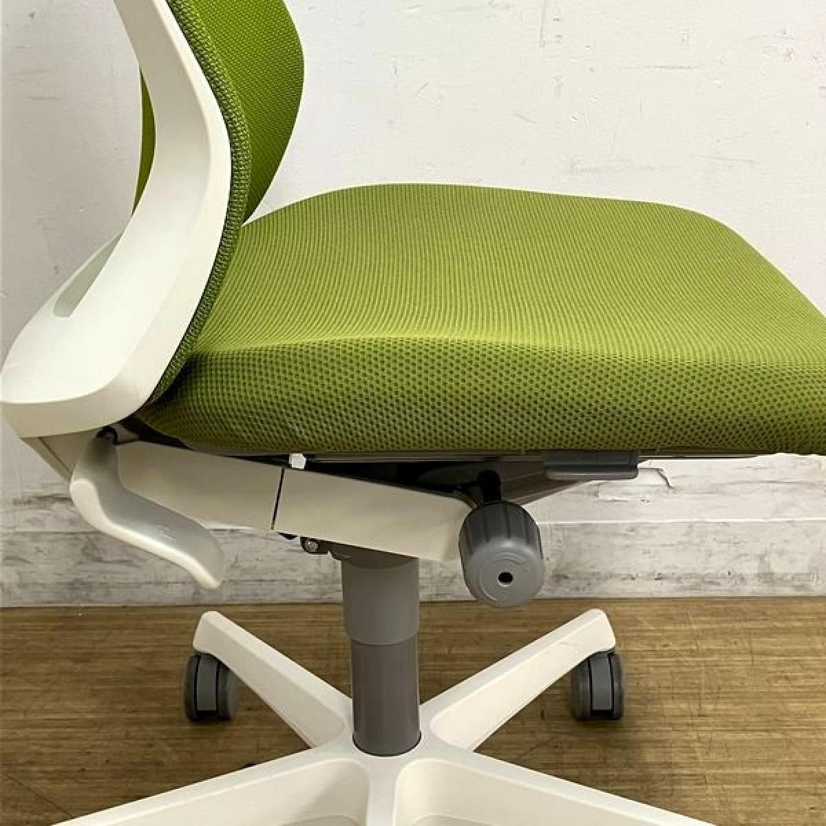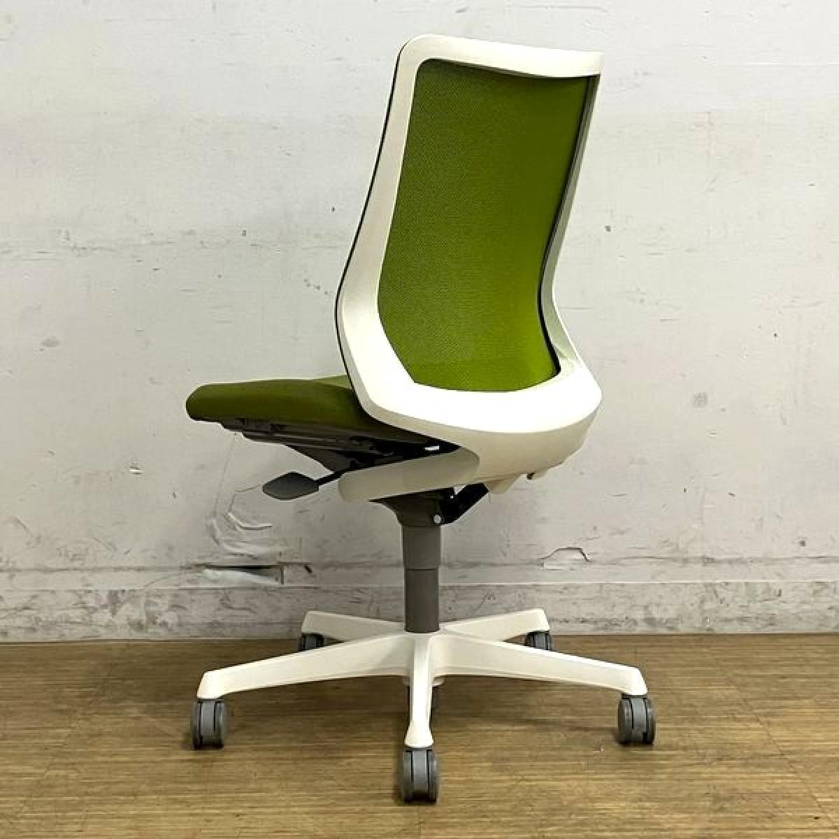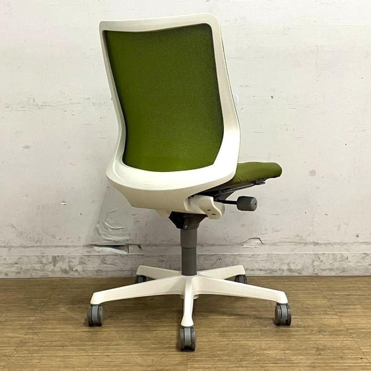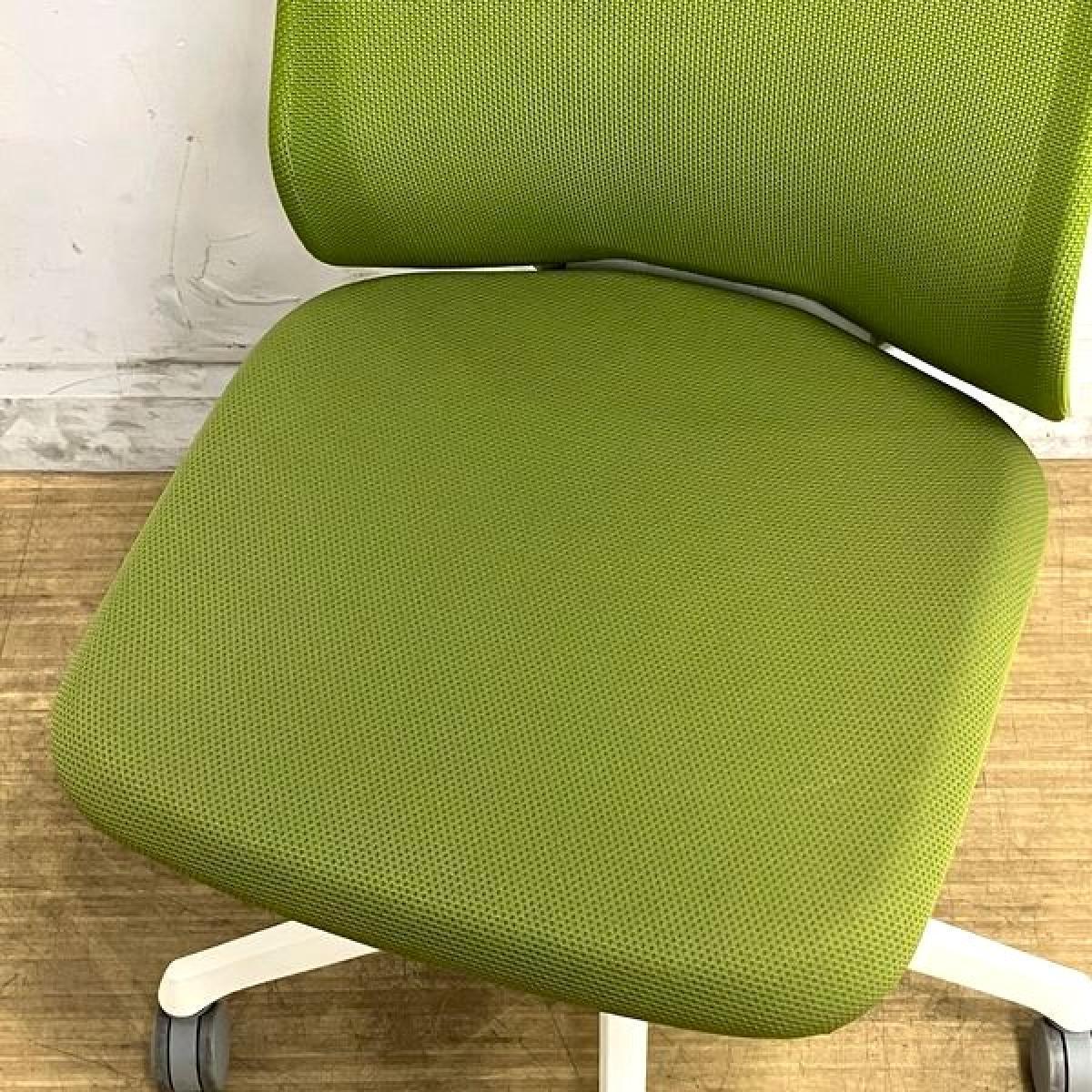 【在庫入替セール】オカムラ フルーエント 肘無し・ローバックモデル 背メッシュタイプ クロス:グリーン フレーム:ホワイト【愛知・名古屋・豊田・静岡・浜松】- 名古屋千種店