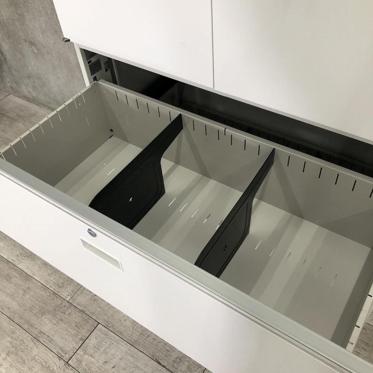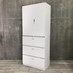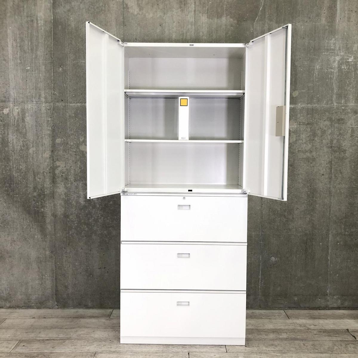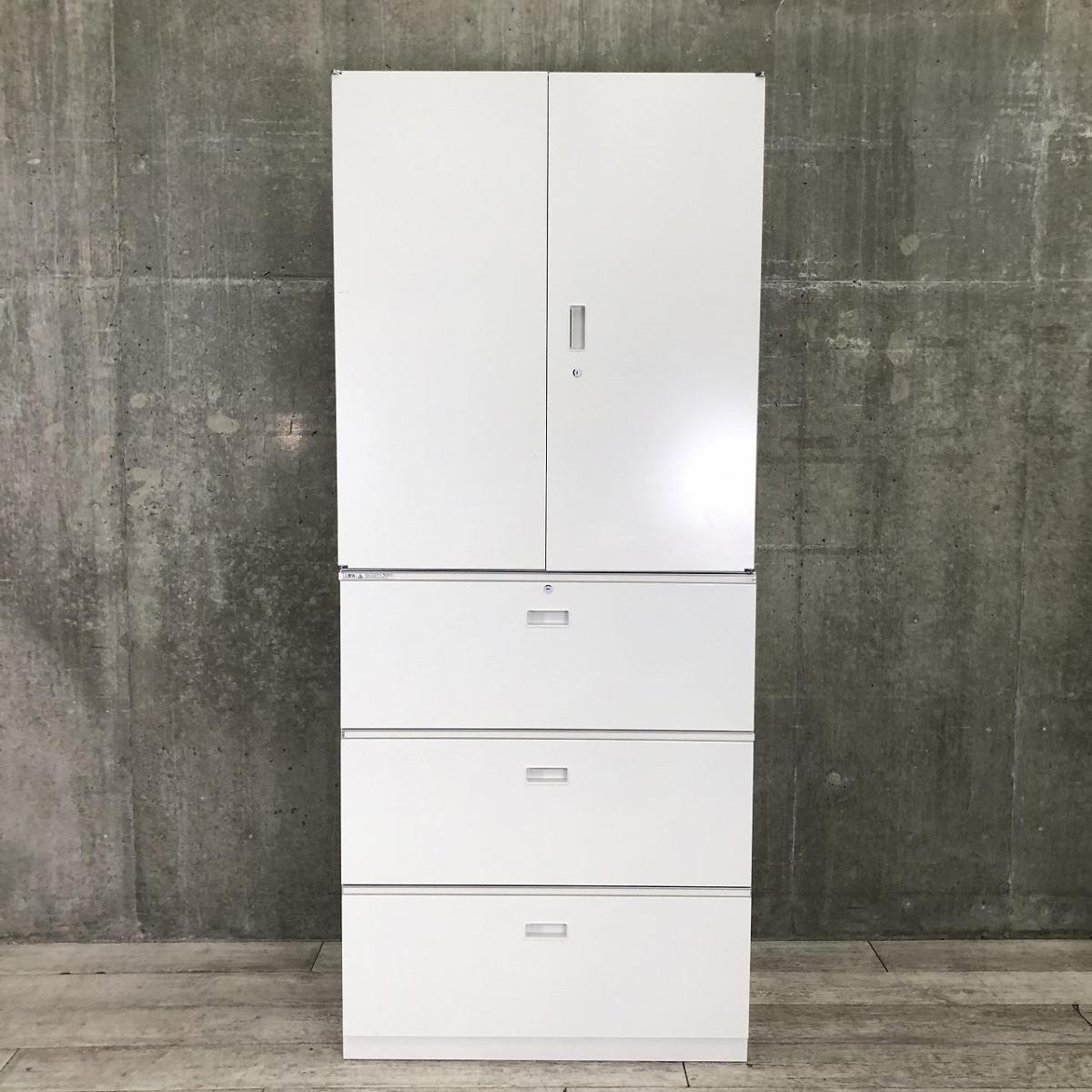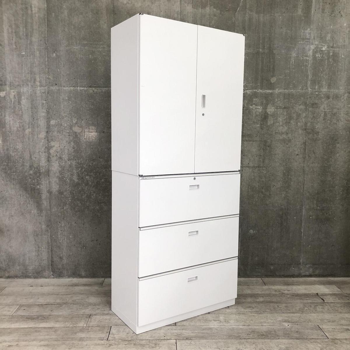 【これ1台で書類整理の問題が解決!上下で6段分の大容量収納!】■イトーキ(ITOKI)製 シンライン 書庫セット(両開き+3段ラテラル) ■ホワイト ■シリンダー錠